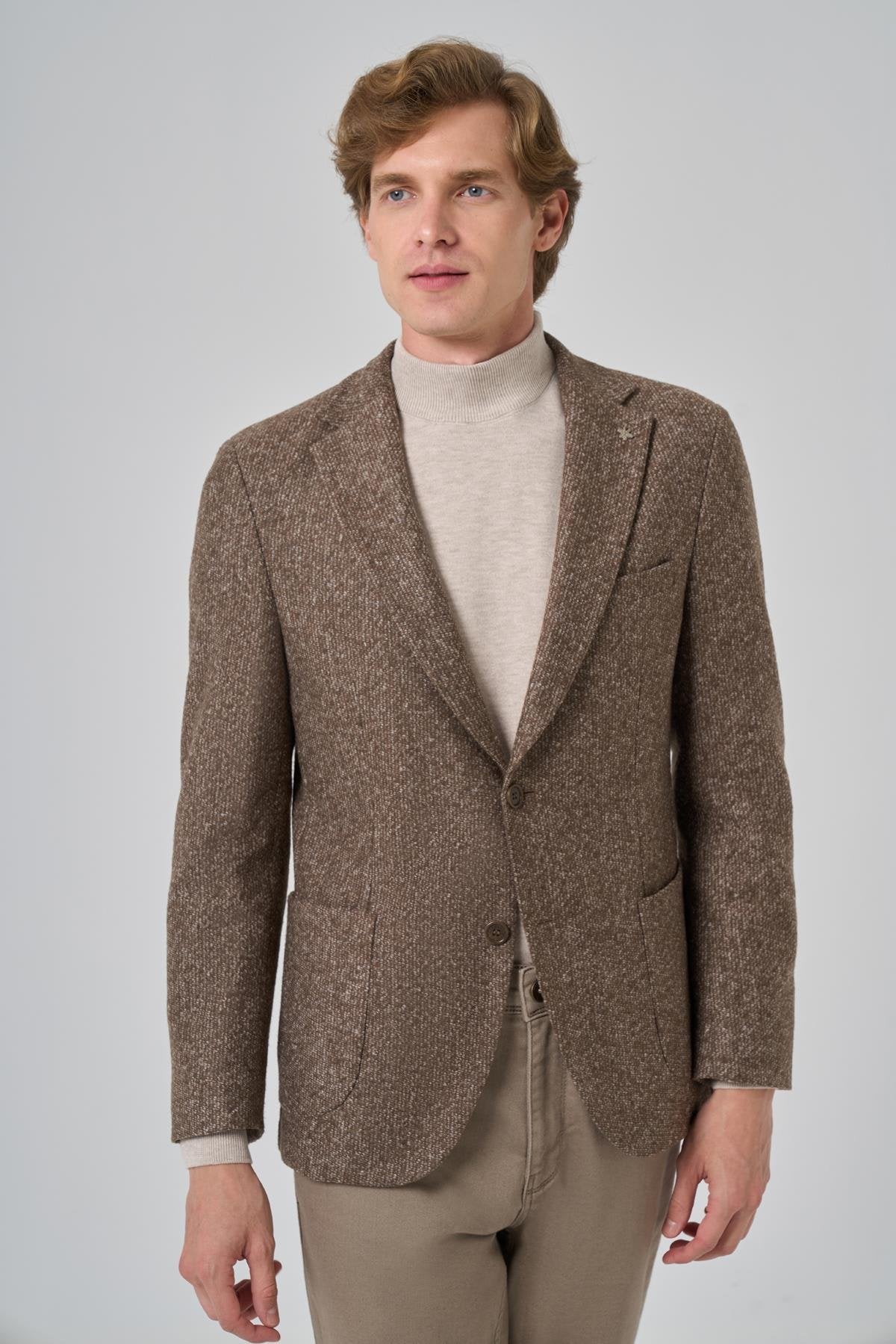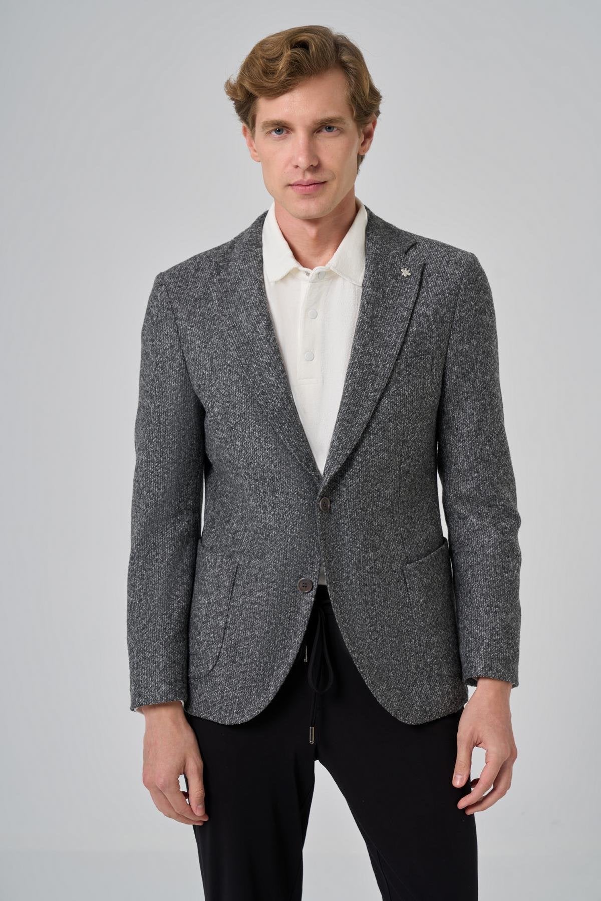 Elevate your style with the Morven Men's Slim Fit Patterned Blazer. This sophisticated blazer is designed for the modern man who appreciates elegance and comfort. Crafted from a high-quality blend of 62% polyamide and 38% wool, this blazer features a stylish patterned design and a mono collar, making it perfect for both formal and semi-formal occasions.