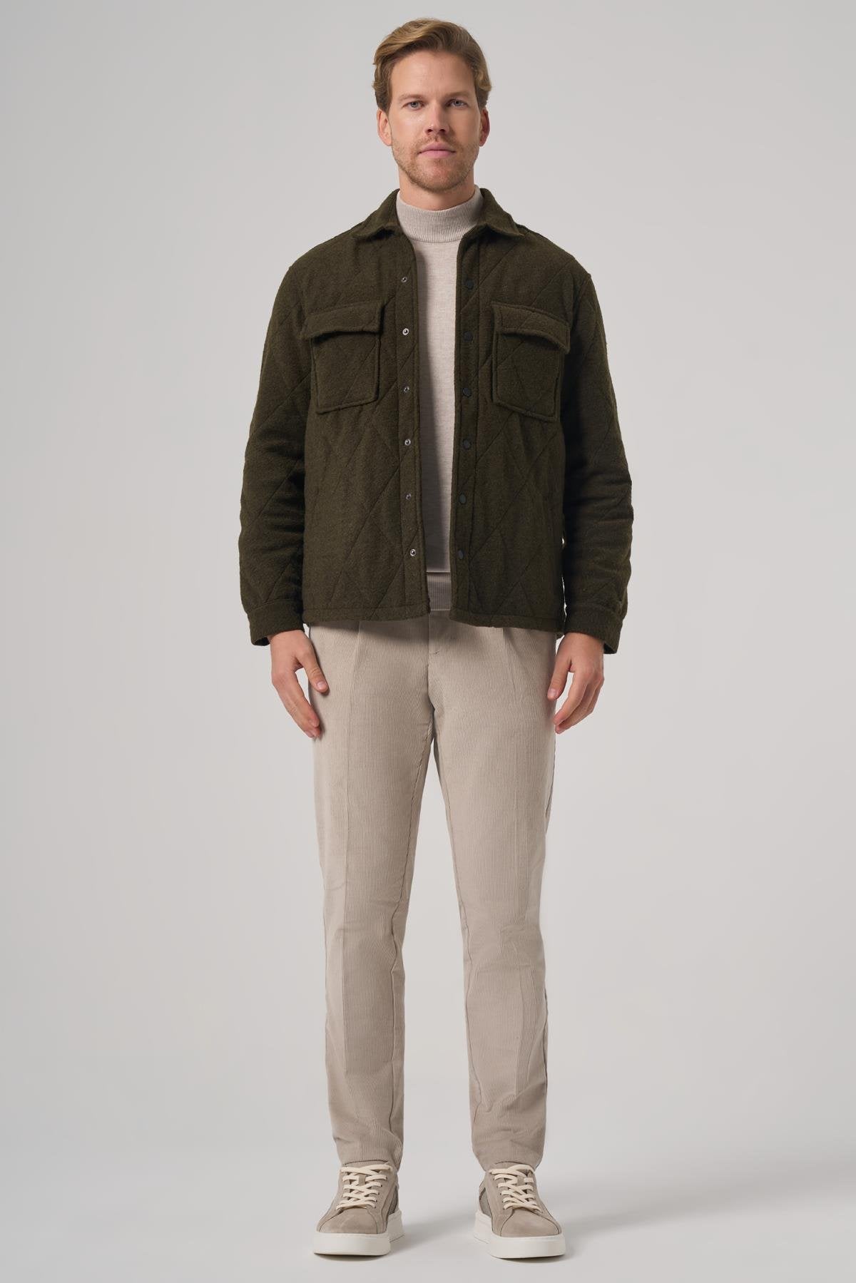 Introducing the Morven Men's Wool Dynamic Fit Berber Collar Coat, designed for both style and warmth. This coat features a dynamic fit with a straight silhouette, crafted from a blend of 80% polyester and 20% wool, ensuring durability and insulation. The distinctive berber collar adds a stylish touch, while the button closure provides ease of wear. With practical side pockets for storage and long sleeves, this coat is fully lined for added comfort, making it perfect for layering in cooler weather or wearing on its own. The model, wearing a sample size L, stands at 188 cm tall with measurements of 96 cm in chest, 81 cm in waist, and 99 cm in hip. Please note that color differences may occur due to lighting and shadows in the studio shooting environment.