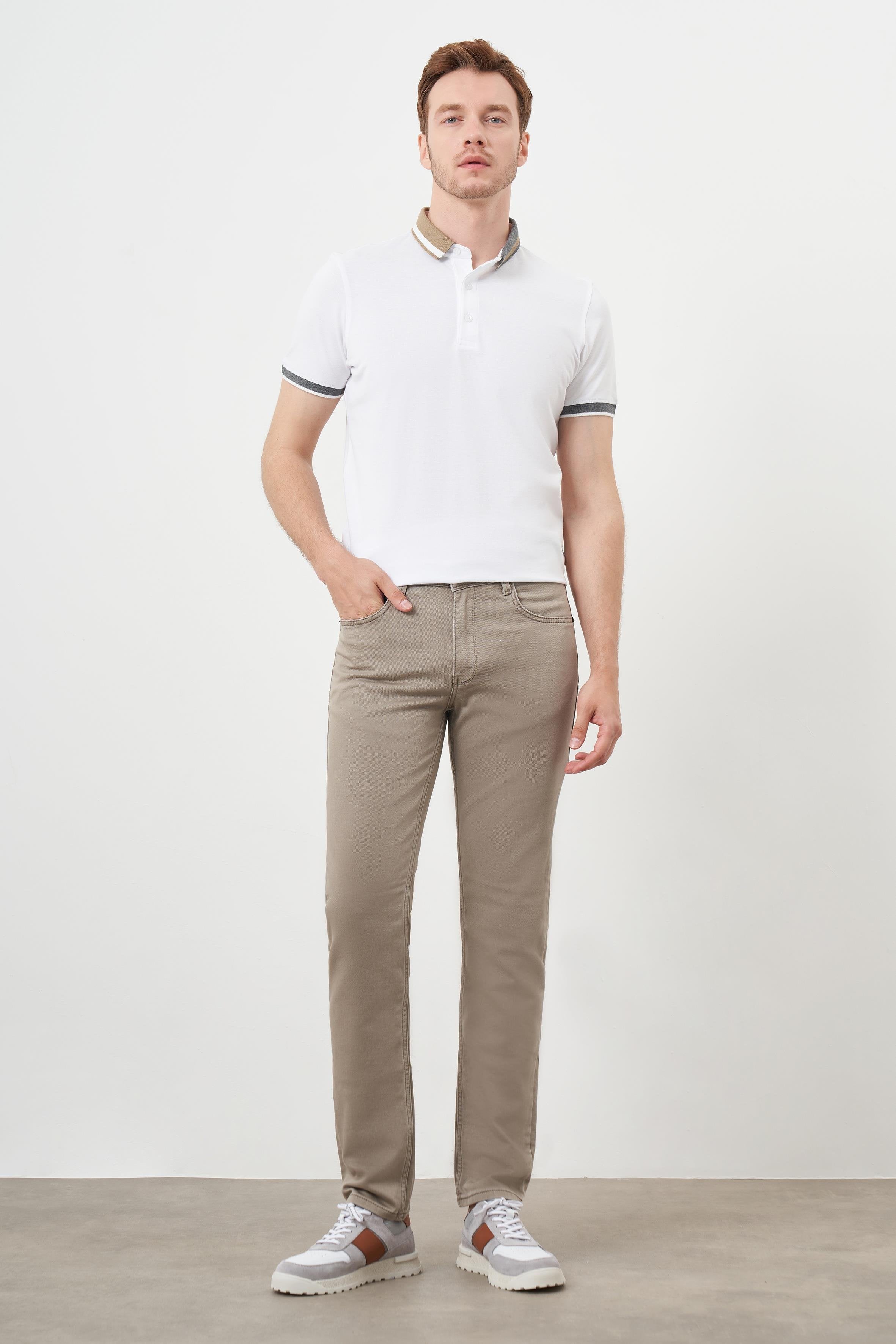 Upgrade your wardrobe with our Dynamic Fit Straight Leg Jeans, expertly crafted from a high-quality blend of 89.5% cotton, 7.5% polyester, and 3% elastane for a comfortable and flexible fit. These jeans feature 5 pockets for added practicality and a secure button and zipper closure, making them perfect for both casual wear and more polished looks.