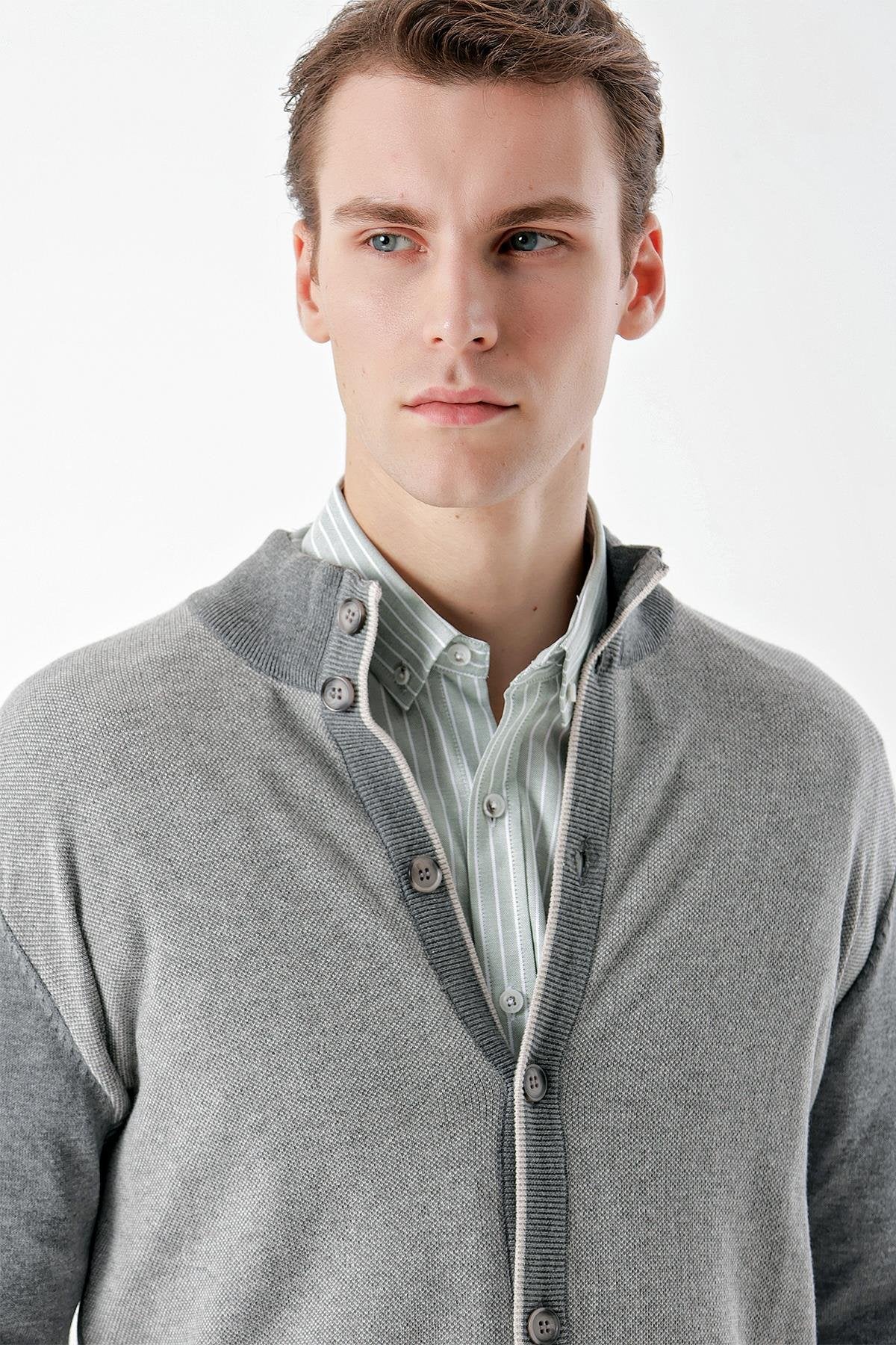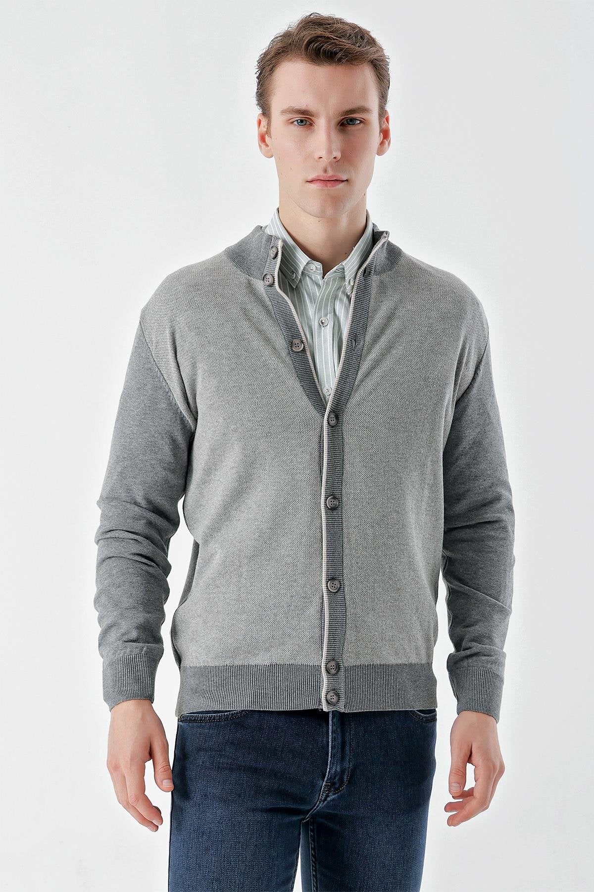 Morven Men's Medium Trendy Eyelet Buttoned Knitwear Cardigan