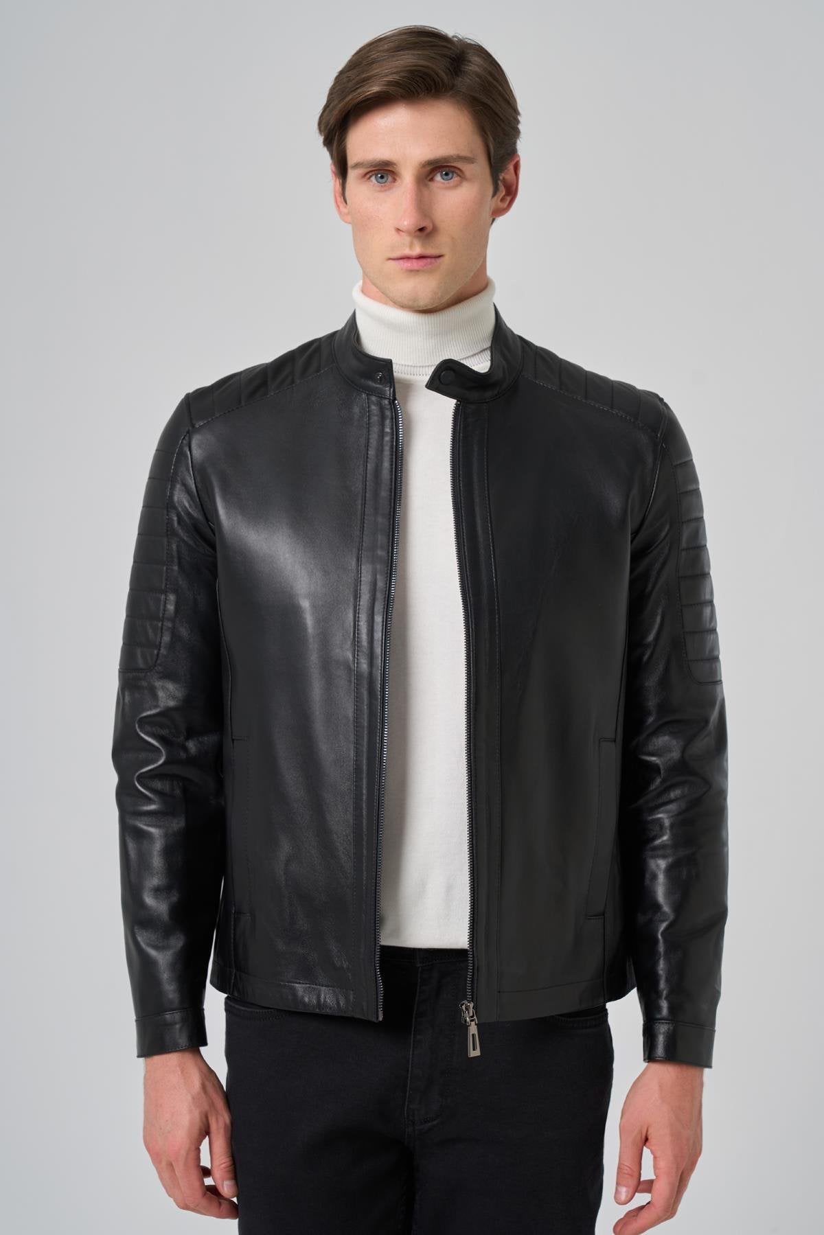 Introducing the Morven Men's Black Ibiza Biker Short Leather Jacket, a stylish and edgy addition to your wardrobe. This jacket features a dynamic fit with a straight silhouette, crafted from 100% leather for durability and a premium feel. The zippered closure ensures a secure fit, while the side pocket with zipper provides practical storage for your essentials. With long sleeves, this jacket is perfect for layering in cooler weather. The model, wearing a sample size L, stands at 190 cm tall with measurements of 100 cm in chest, 84 cm in waist, and 96 cm in hip. Please note that color differences may occur due to lighting and shadows in the studio shooting environment. Accessories such as trousers, belts, and shoes were used during the shoot and will not be included.