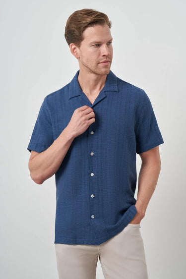 Morven Men’s Indigo Linen Short-Sleeve Shirt