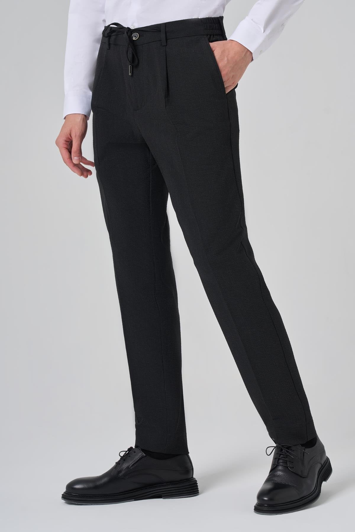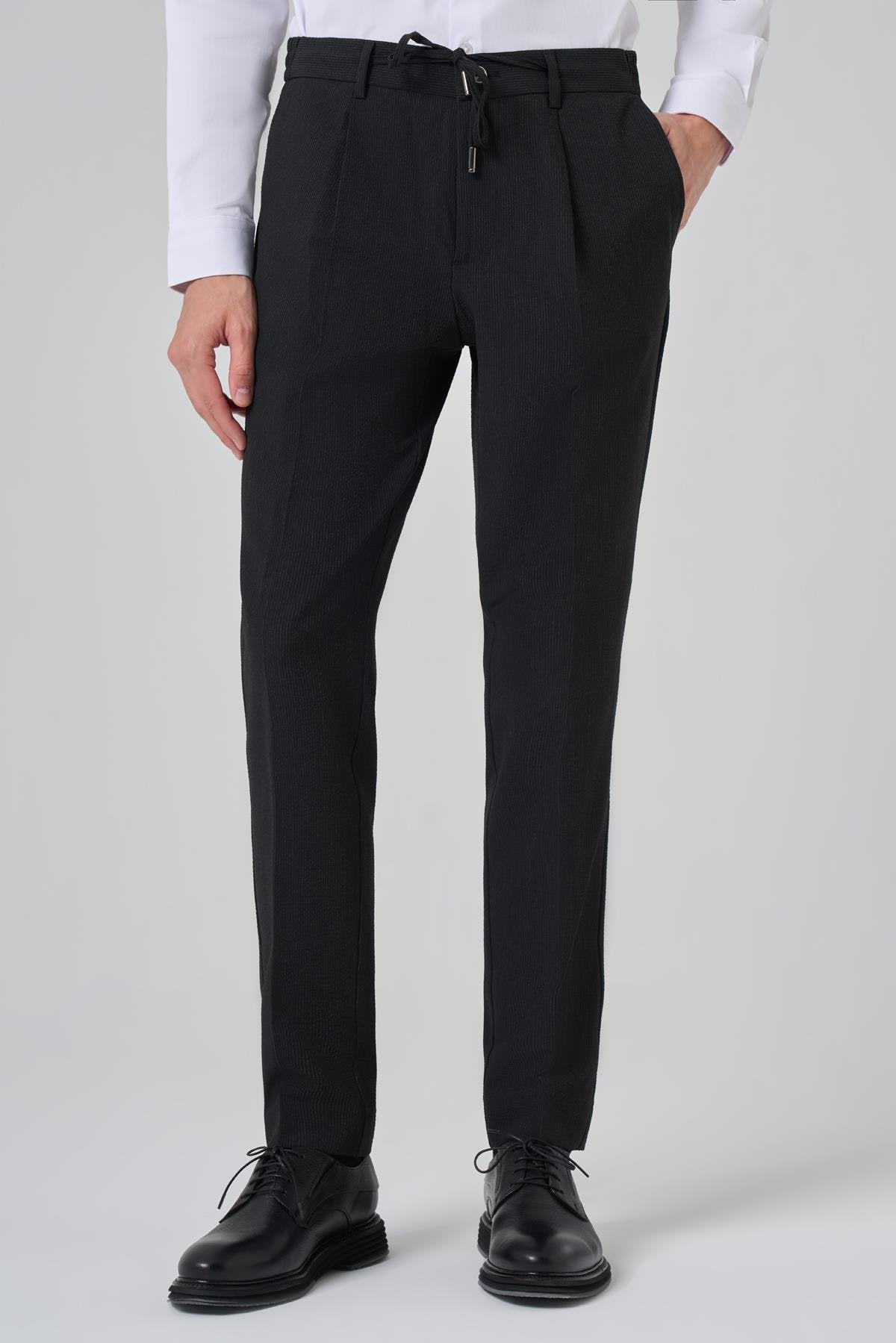 Enhance your wardrobe with our Slim Fit Striped Pants, crafted from a comfortable blend of 74% polyester, 23% viscose, and 3% elastane. These pants feature a stylish striped design, convenient side pockets, and a secure button and lace closure, making them ideal for both casual and semi-formal occasions.