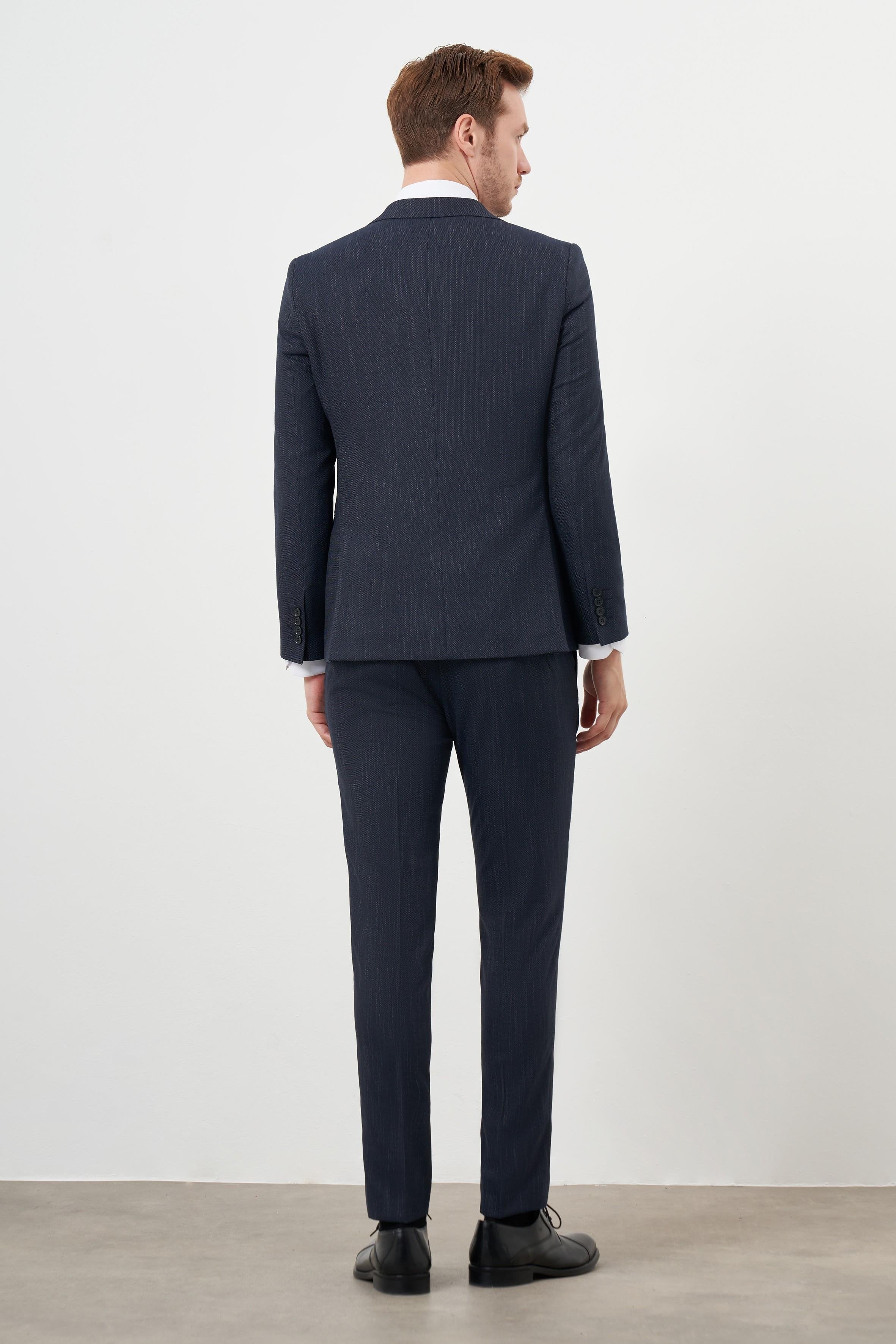 Morven Men’s Navy Slim Fit Patterned Suit Jacket