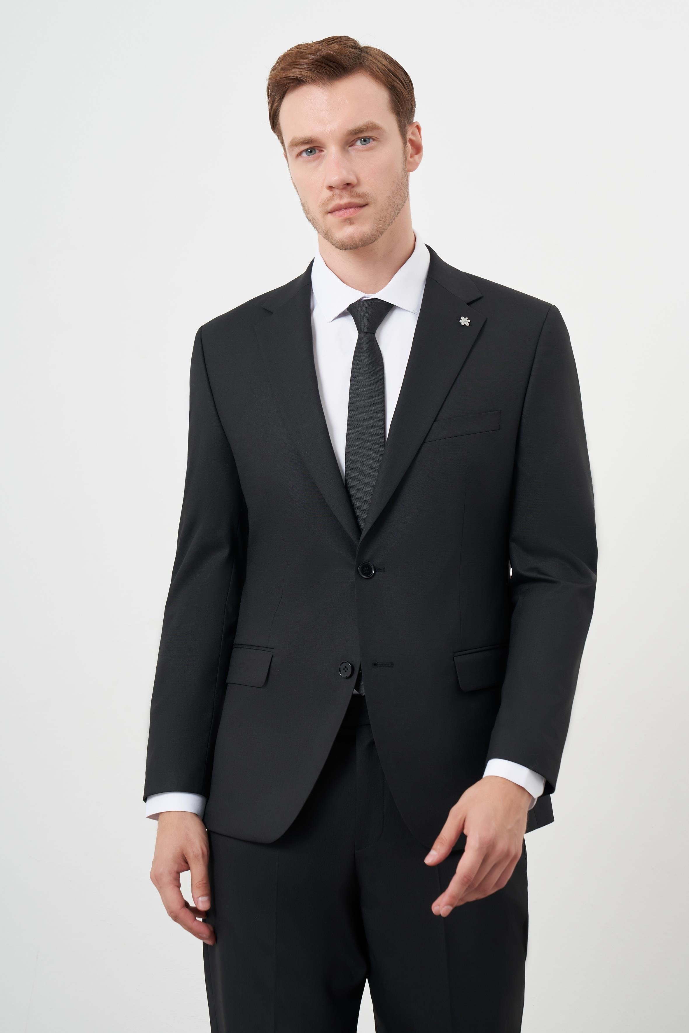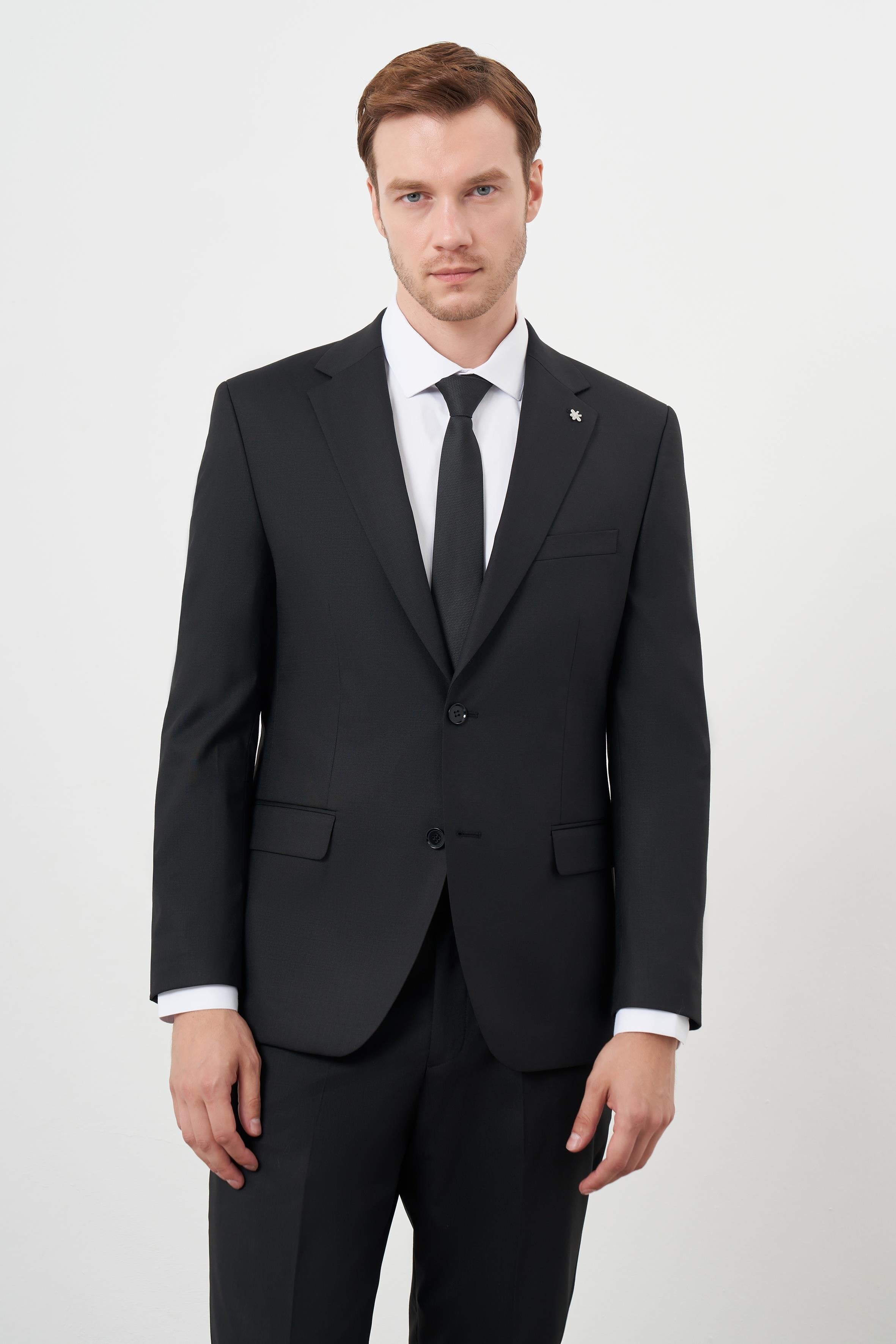 Morven Men's Black Dynamic Fit Wool Suit