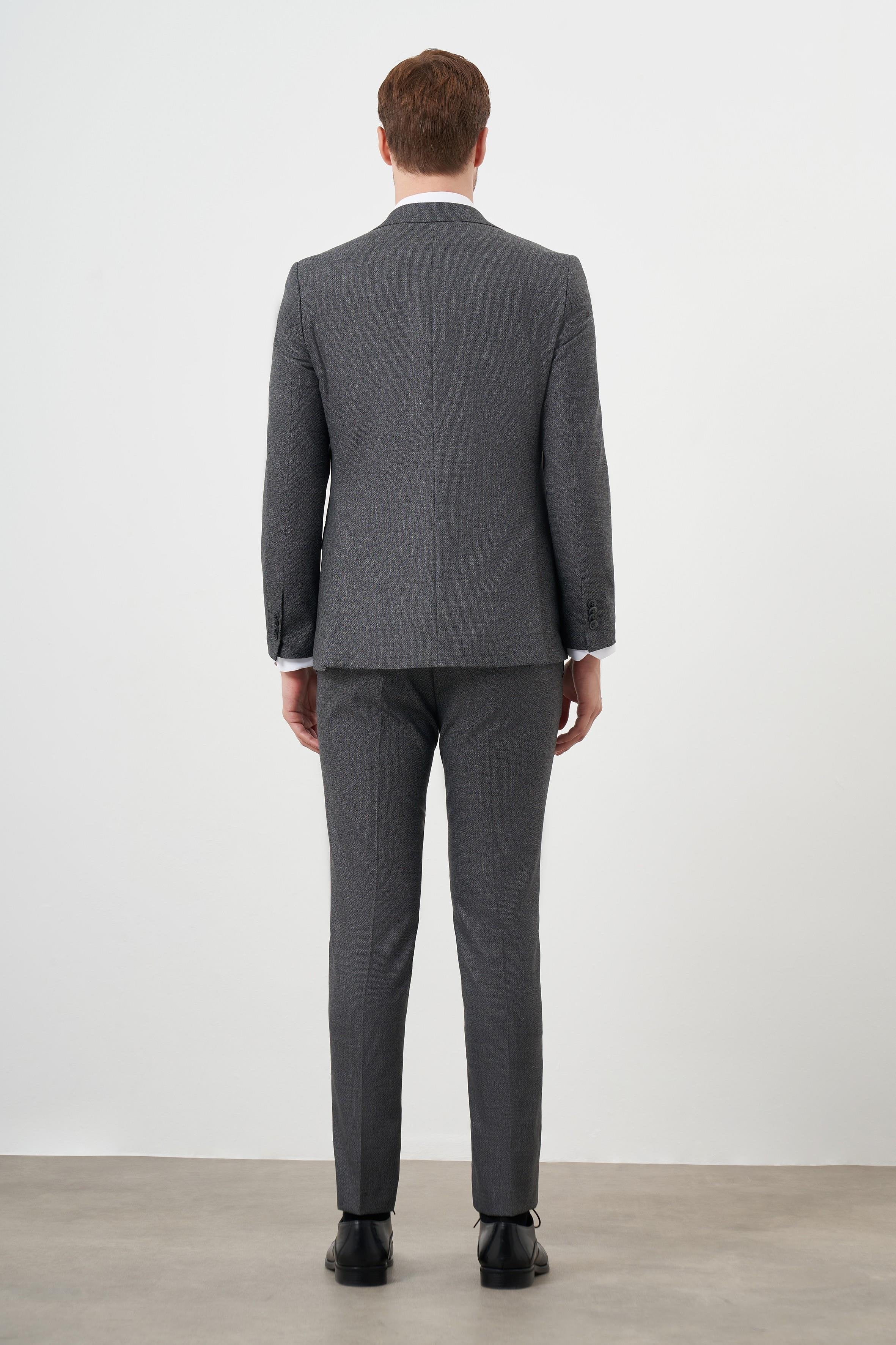 This men's slim fit patterned suit jacket is designed for a modern, tailored look that enhances your silhouette while offering all-day comfort. Crafted from a premium blend of 64% polyester, 34% viscose and 2% lycra, it provides durability, breathability and a slight stretch for ease of movement. The pointed collar and flap pockets give it a sharp, contemporary appeal, while the full lining and double-slit back improve structure and flexibility. Featuring long sleeves, a neat button-closure front and a polished finish, this blazer is ideal for work, business meetings, weddings, formal events or smart-casual styling. The model, with a height of 190 cm and measurements of 100/84/96, wears a size 50 for reference. Colour tones may vary slightly due to studio lighting. Please note: shirts, ties, belts, pocket squares and shoes shown in the images are for styling purposes only and are not included.