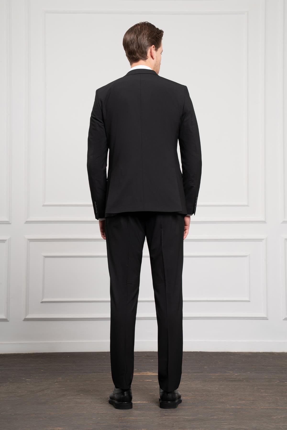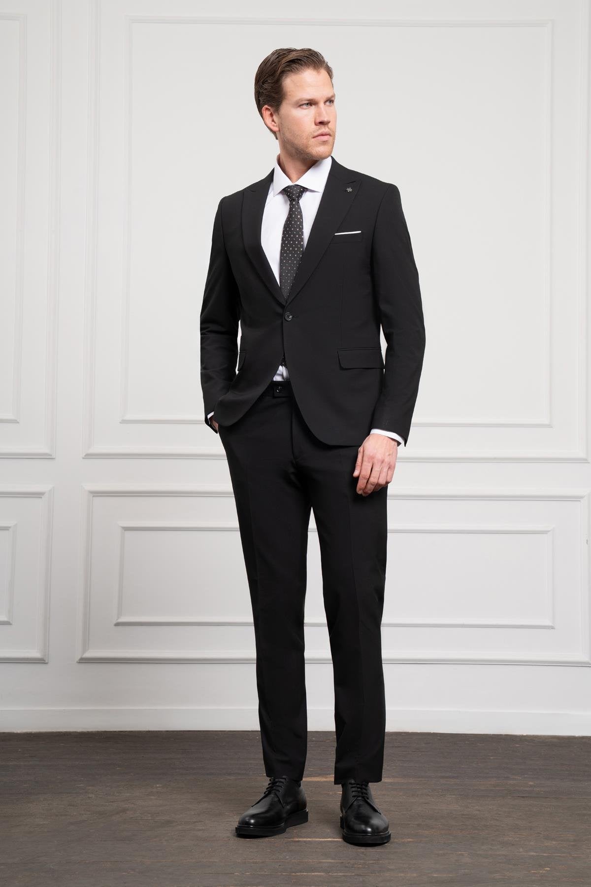 Morven Men's Black Trendy Slim Fit Narrow Cut Pointed Collar Suit