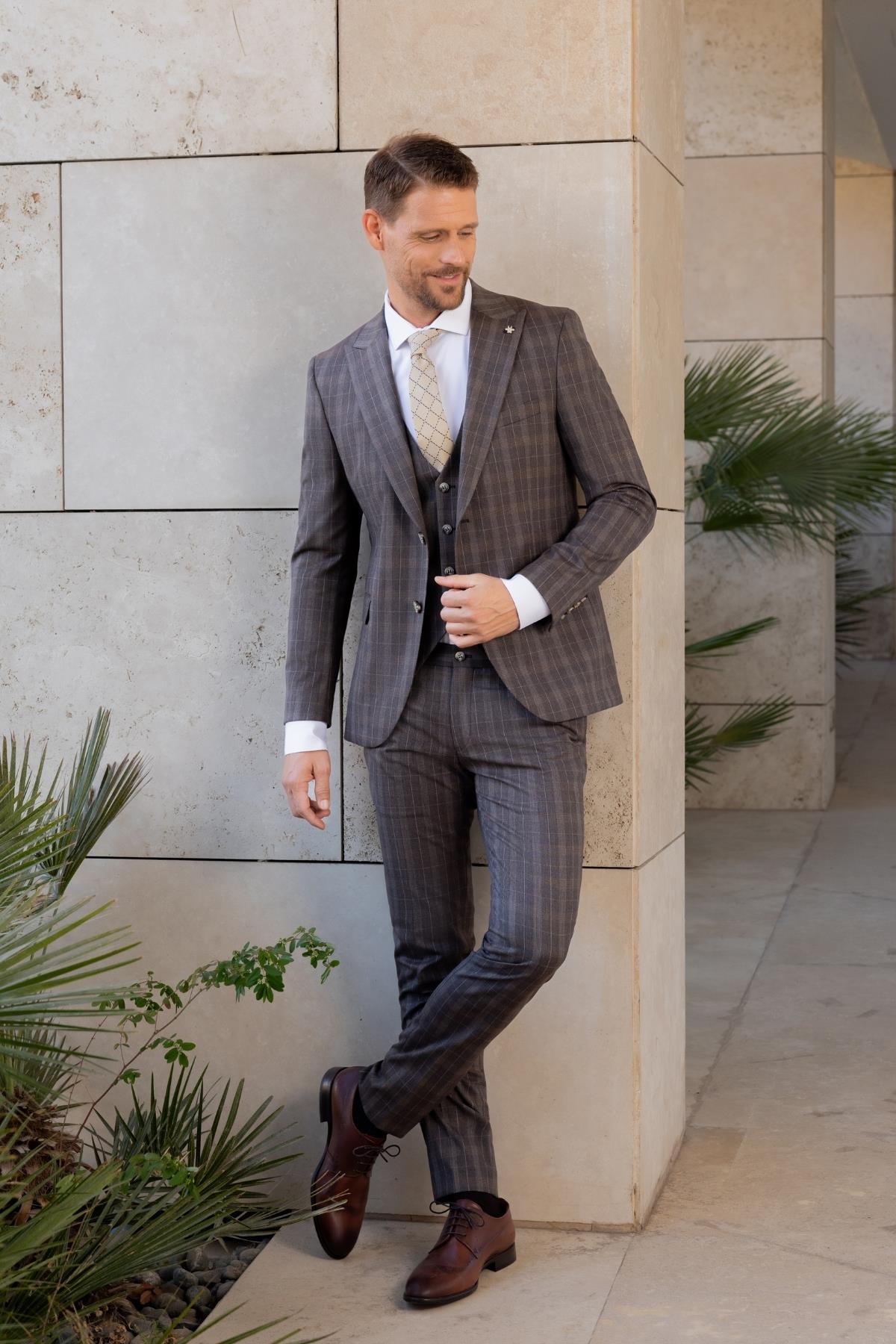 Morven Men's Brown Plaid Slim Fit Vest with Pointed Collar