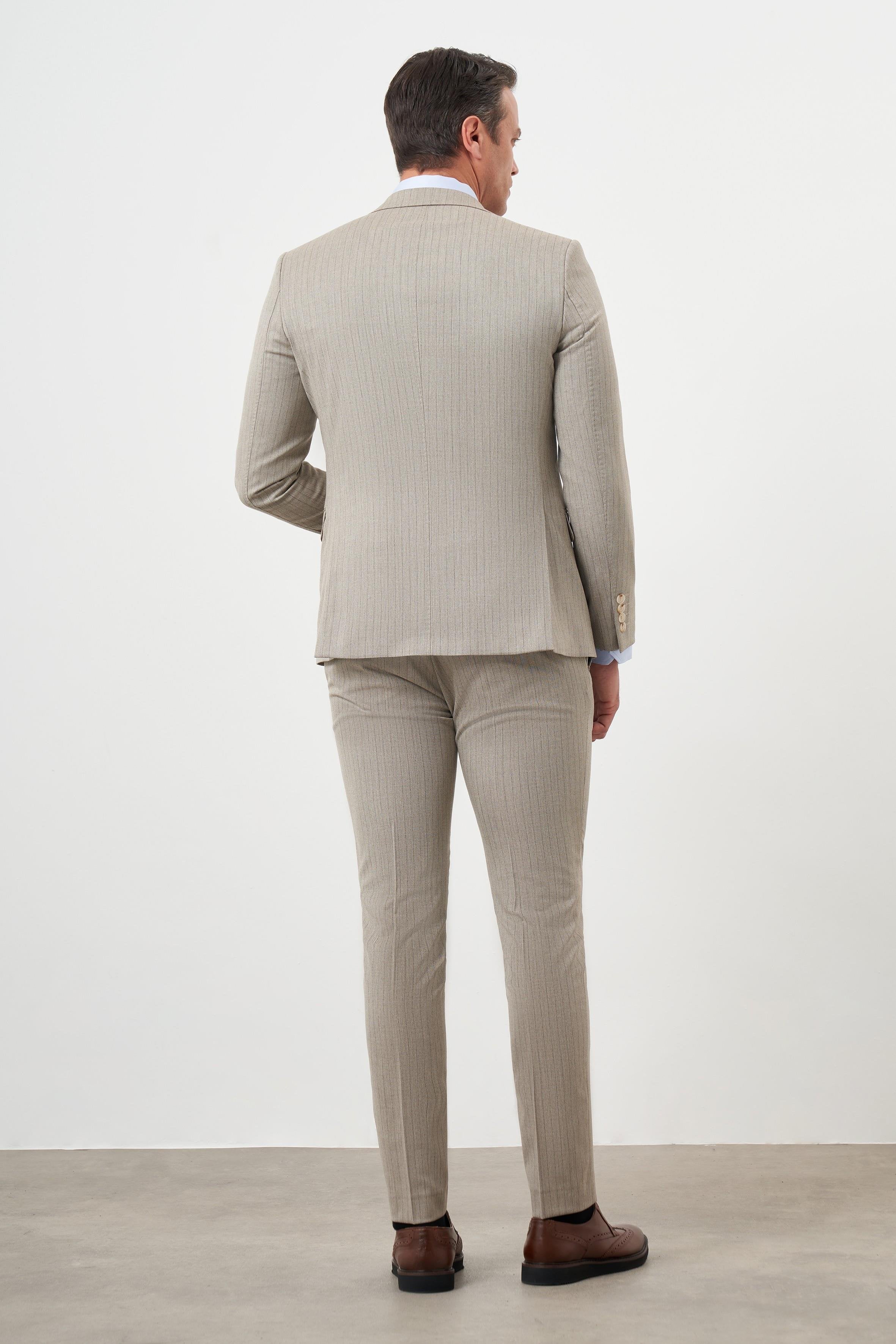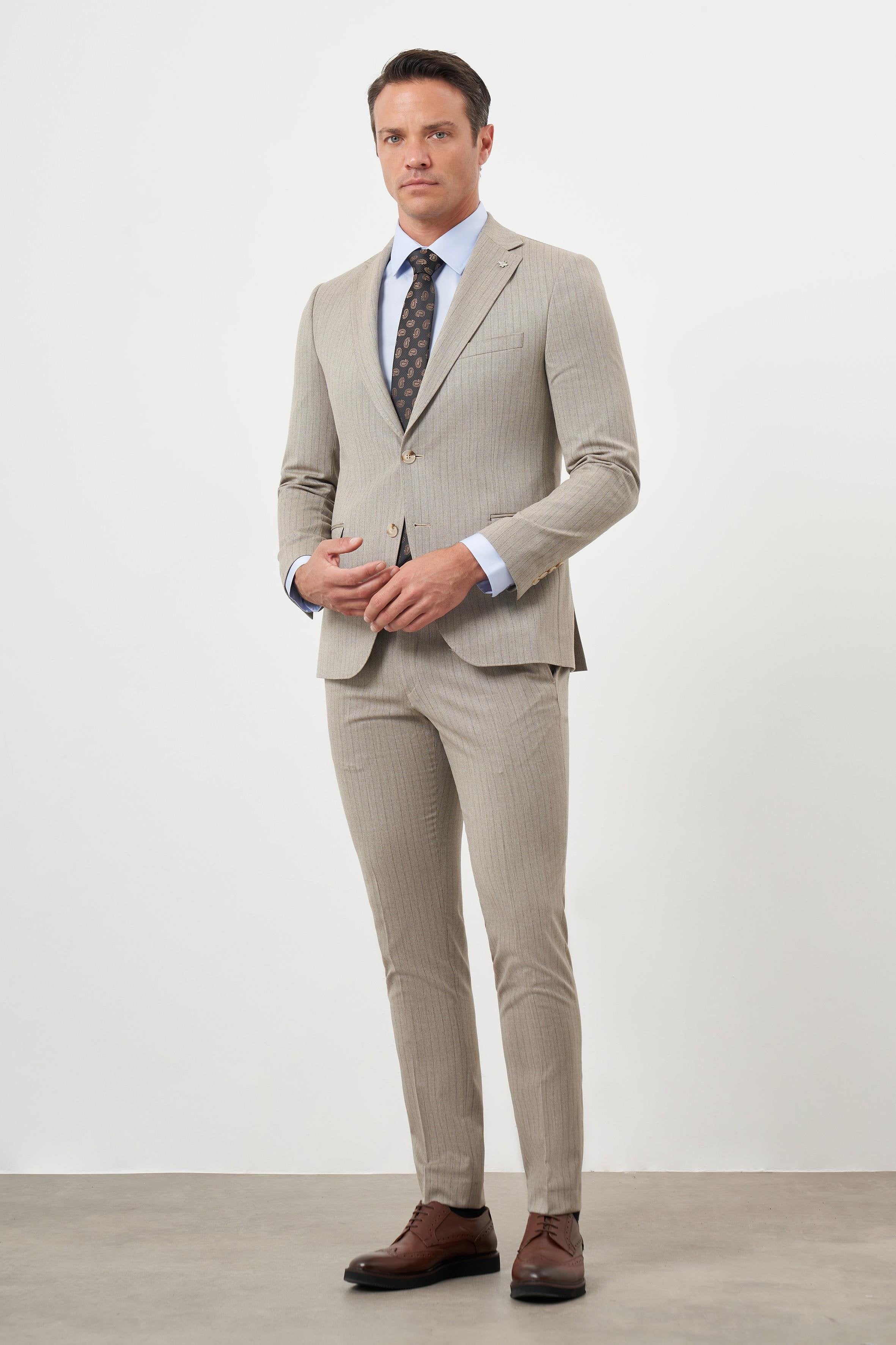 The Morven Men's Brown Striped Slim Fit Suit is the perfect choice for the modern gentleman seeking style and comfort. Crafted from a blend of 64% polyester, 34% viscose, and 2% Lycra, this suit offers a sleek appearance with a touch of flexibility. The slim fit design ensures a flattering silhouette, while the striped pattern adds a contemporary flair.