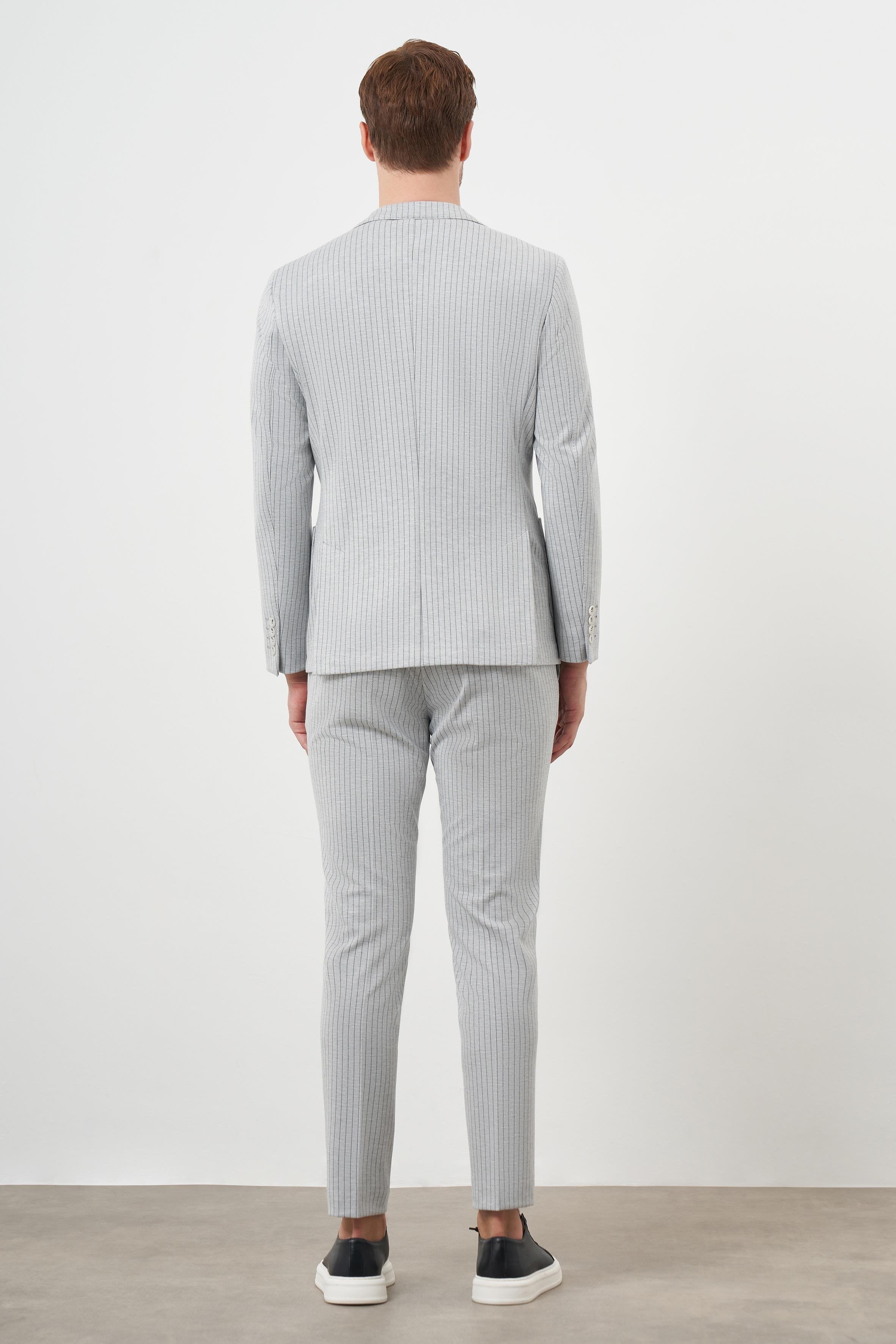 Morven Men's Gray Slim Fit Striped Suit
