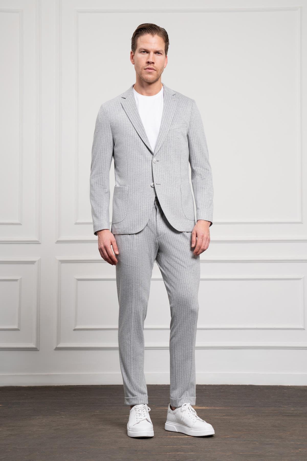 Morven Men's Gray Trend Slim Fit Mono Collar Suit