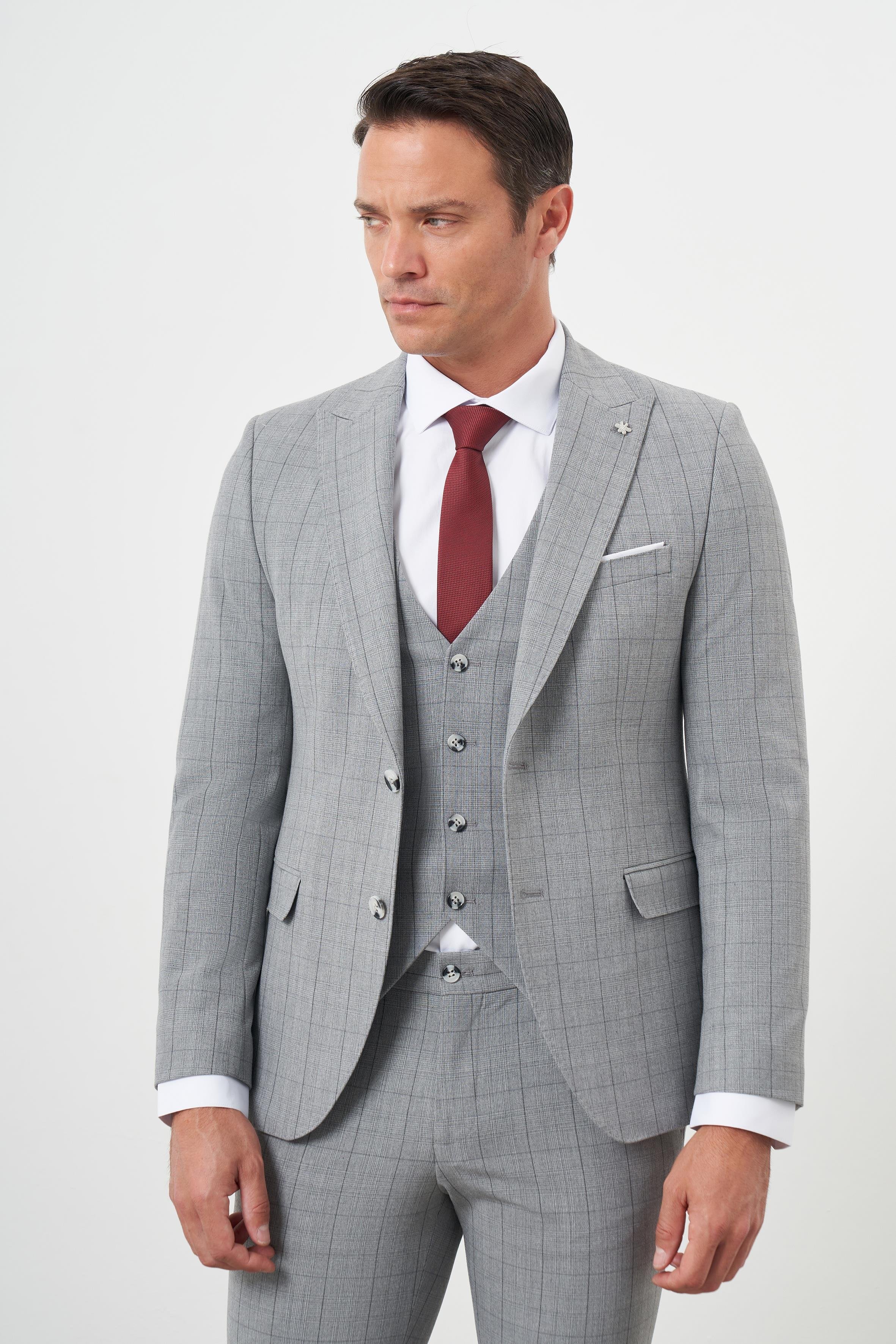 Morven Men's Gray Vested Plaid Slim Fit Suit