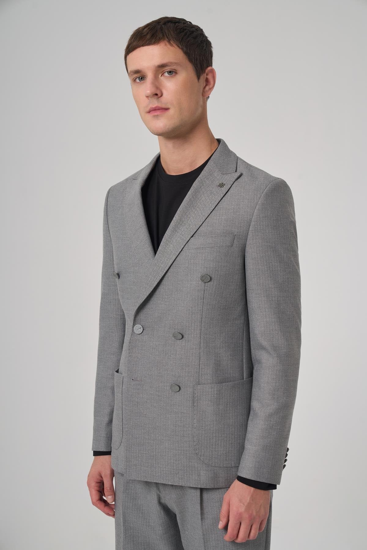 The Morven Men's Grey Polyviscose Trendy Patterned Slim Fit Pointed Collar Suit is a stylish choice for the modern gentleman, perfect for formal events and social gatherings. Crafted from a premium blend of 65% polyester, 32% viscose, and 3% elastane, this suit combines comfort with a contemporary aesthetic.
