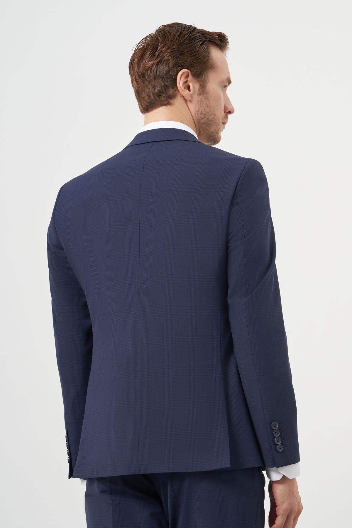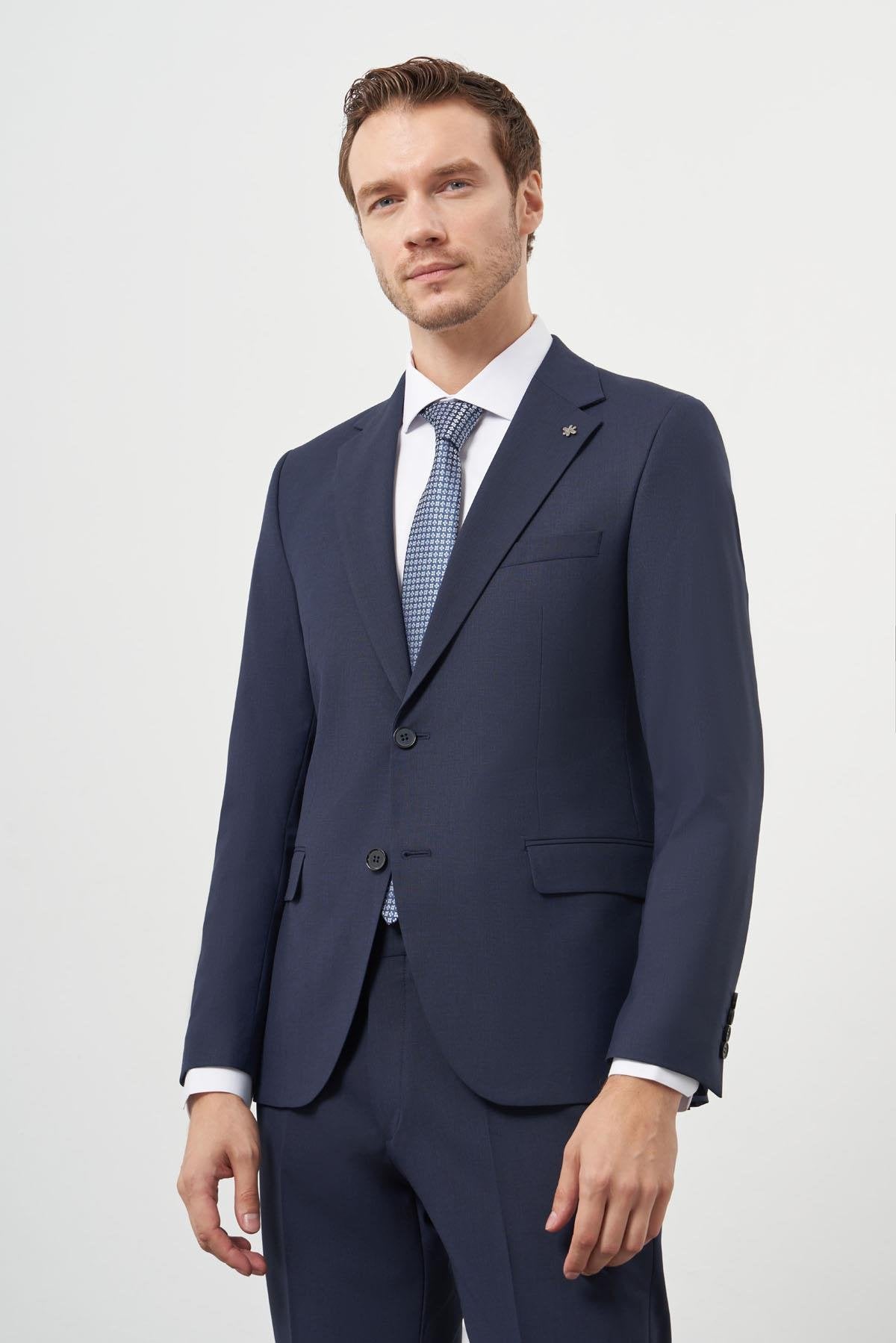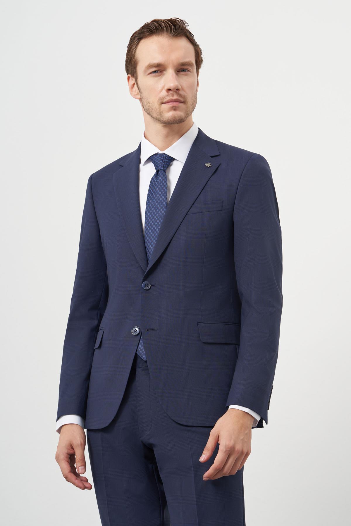 The Morven Men's Patterned Slim Fit Suit is an elegant choice for the contemporary gentleman. Crafted from a luxurious blend of 88% wool, 9% polyviscose, and 4% Lycra, this suit offers exceptional comfort and a refined appearance. The stylish patterned design combined with a mono wide high collar adds a modern touch, while the slim fit ensures a flattering silhouette.