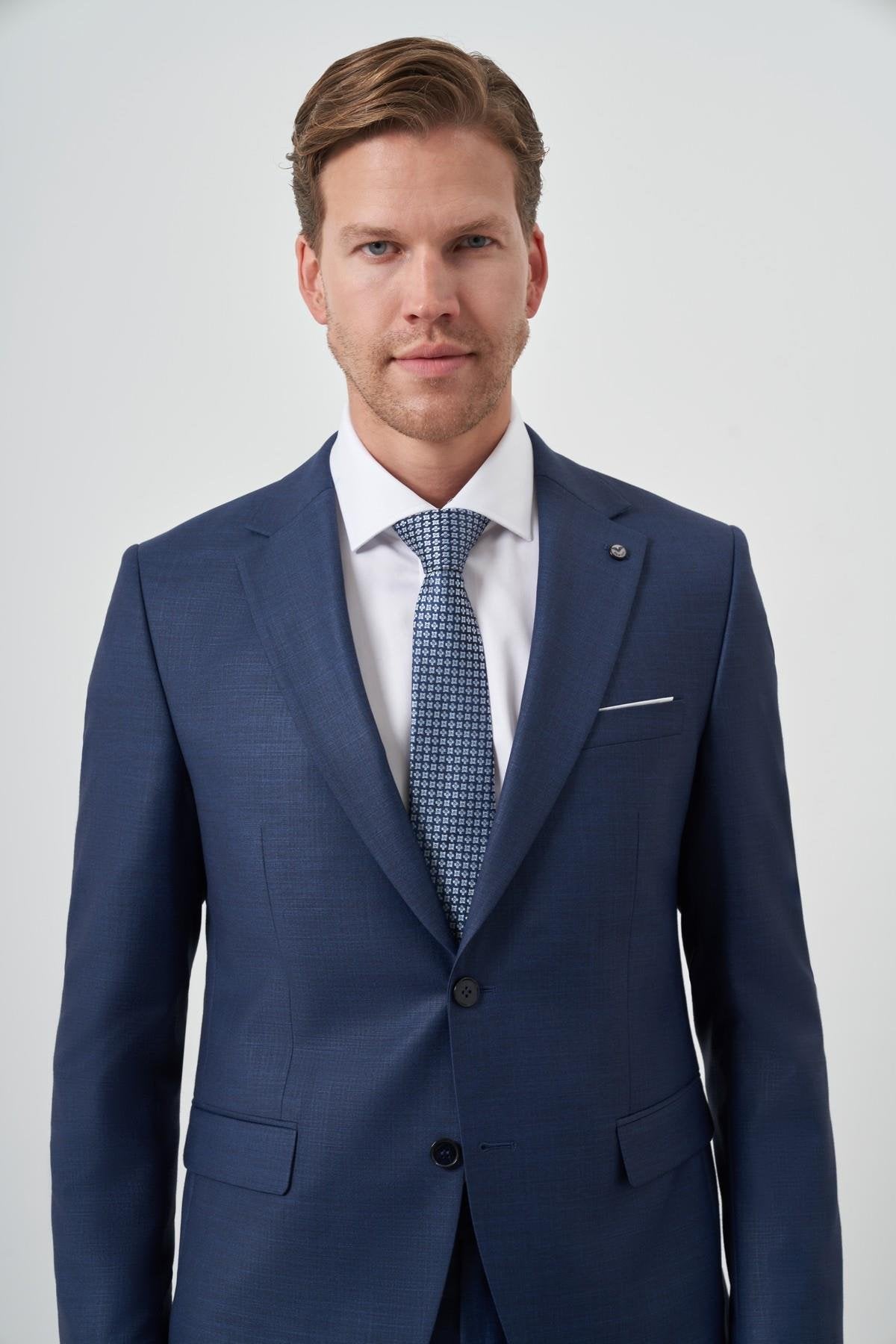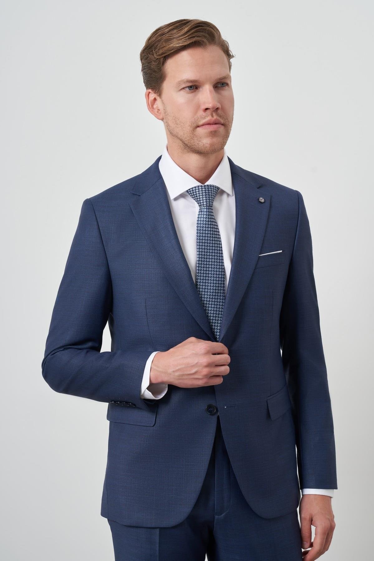 Featuring a stylish mono collar, practical side pockets with flap, and a classic button closure, this suit combines timeless design with contemporary style. The full lining provides structure, while the double slit (double vent) enhances movement and creates a crisp, professional silhouette.