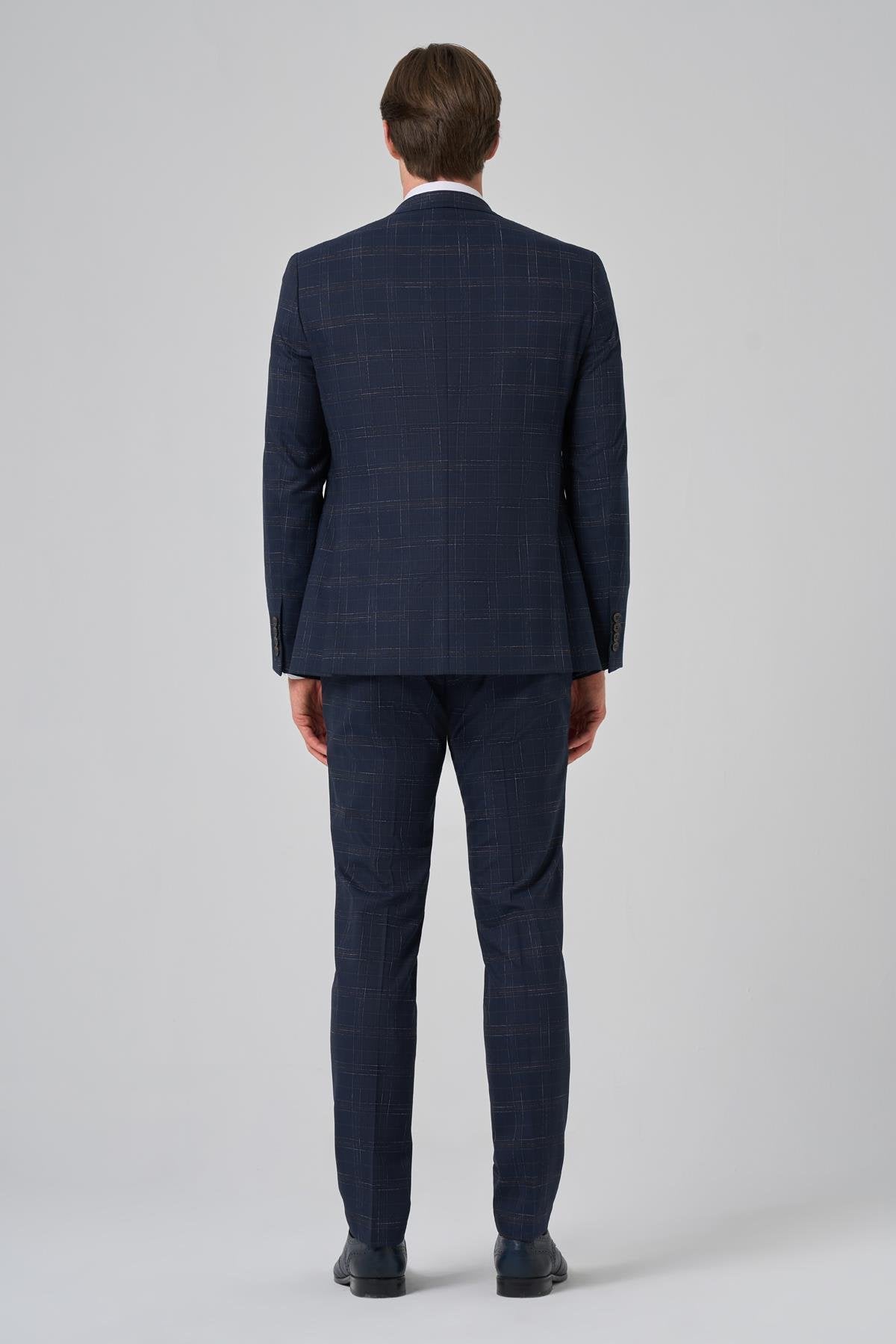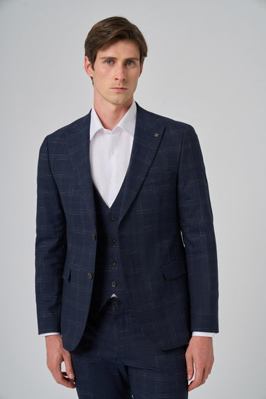 Morven Men's Navy Blue Slim Fit Plaid Suit