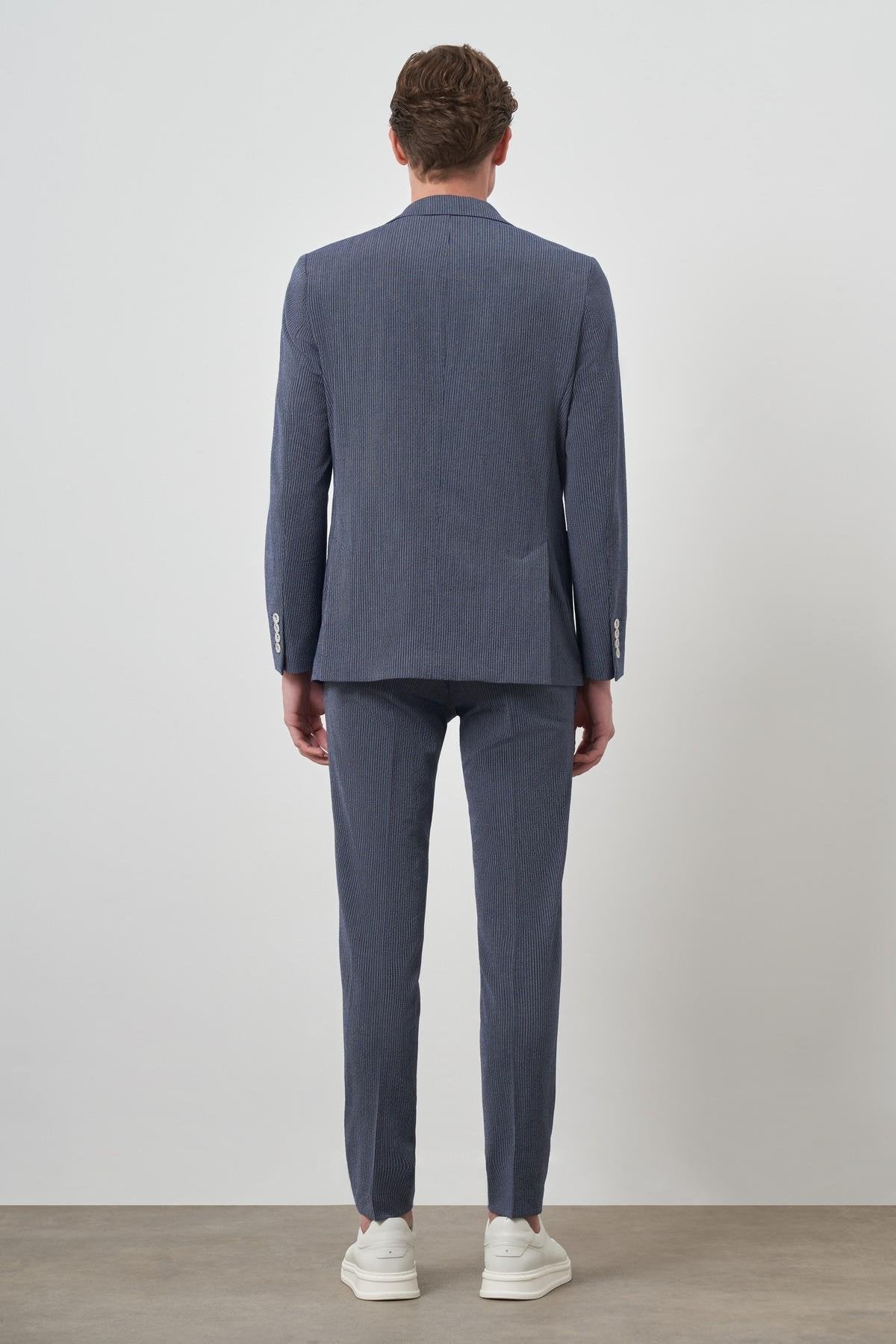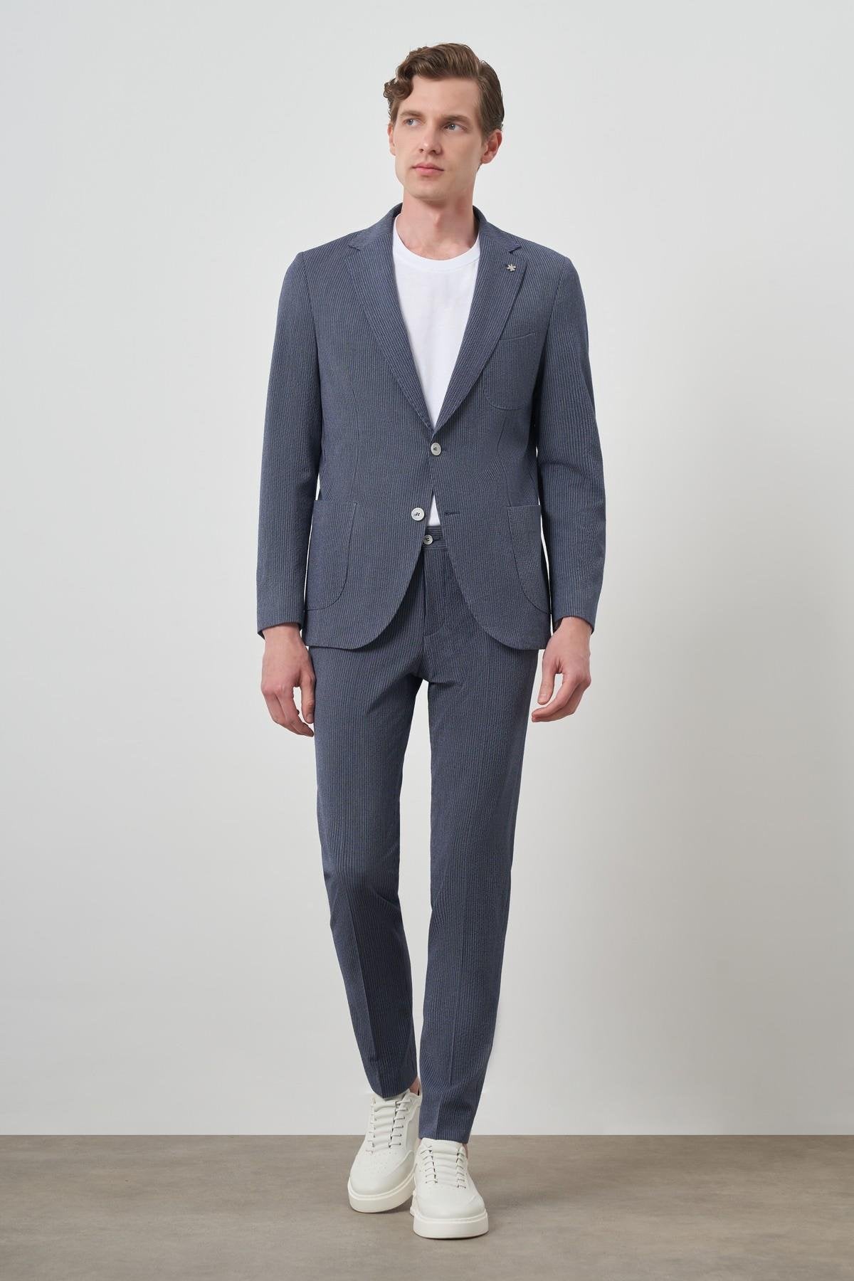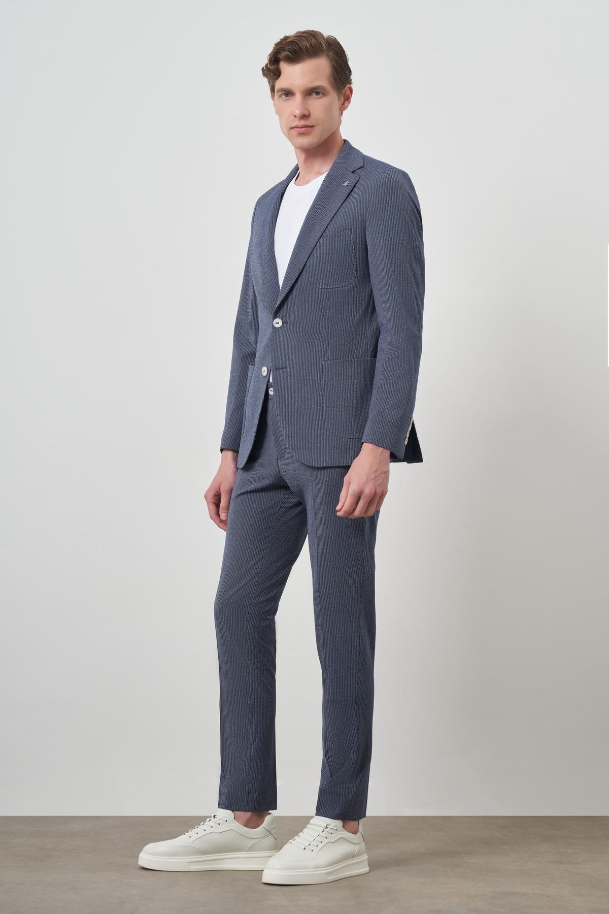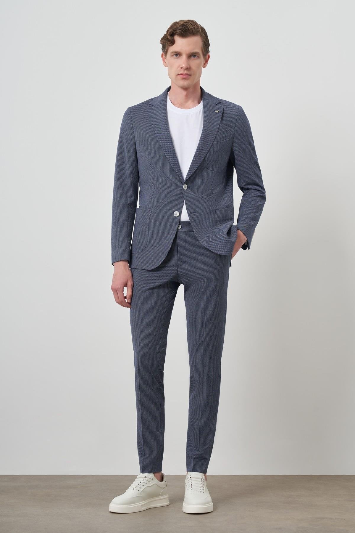 Morven Men's Navy Blue Striped Slim Fit Suit
