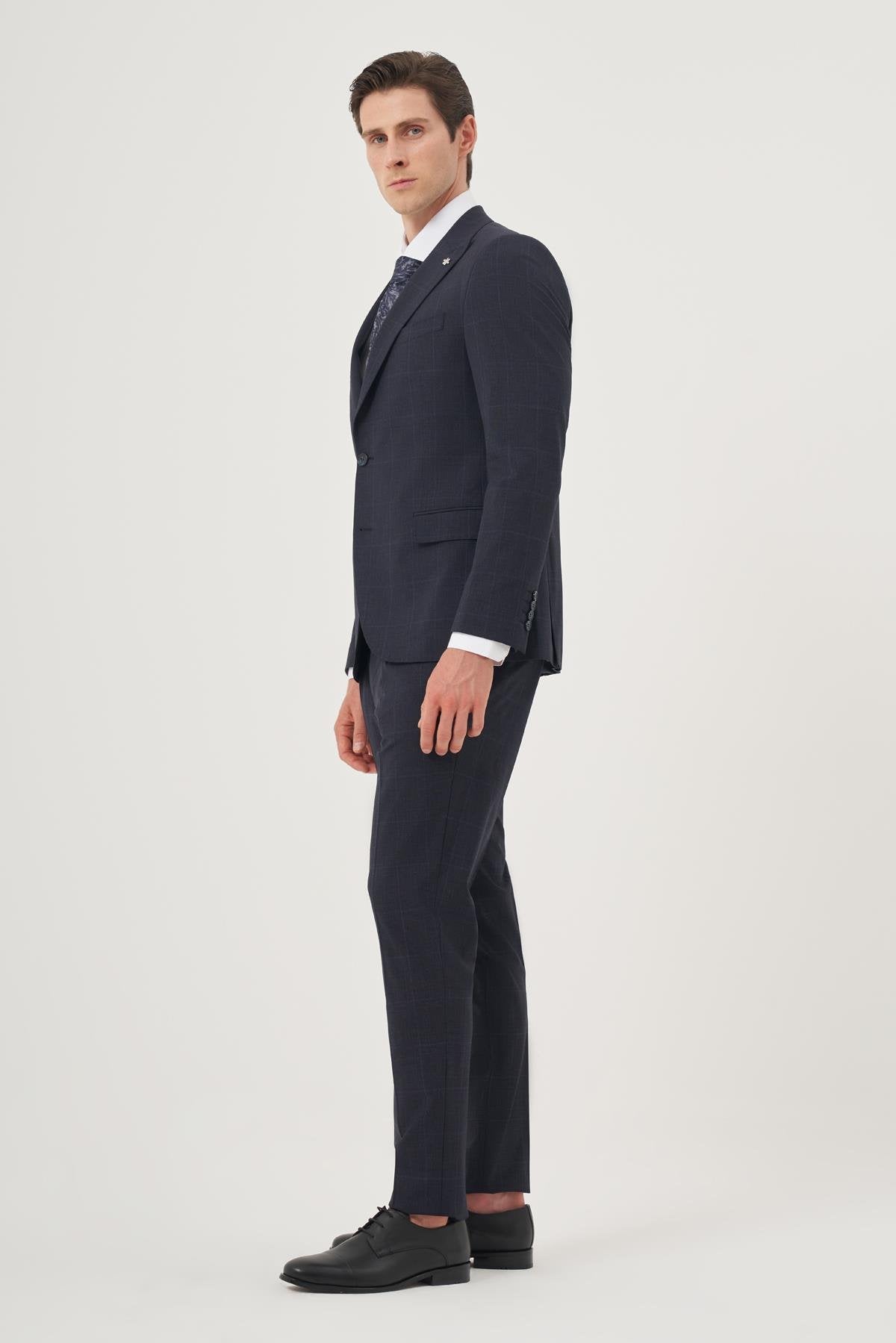 Morven Men's Navy Plaid Slim Fit Suit