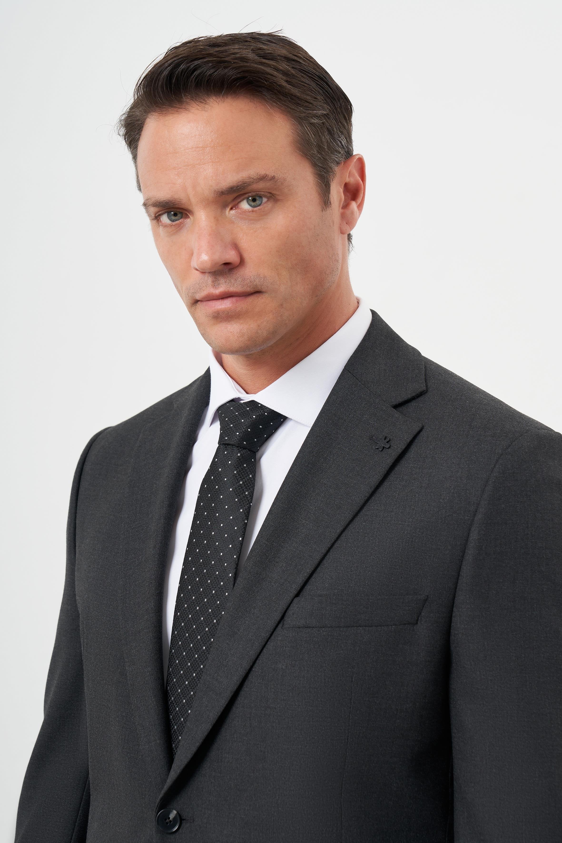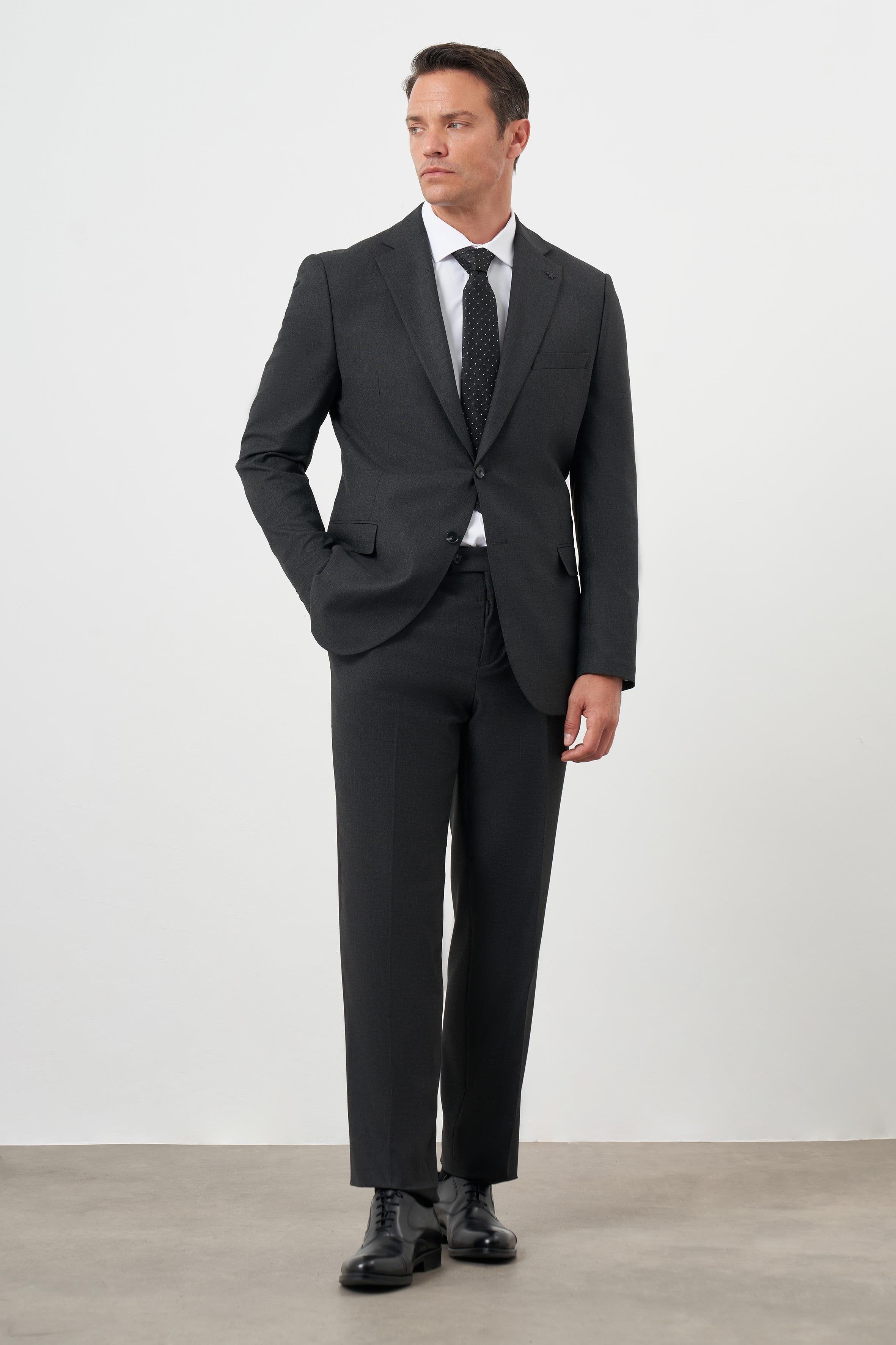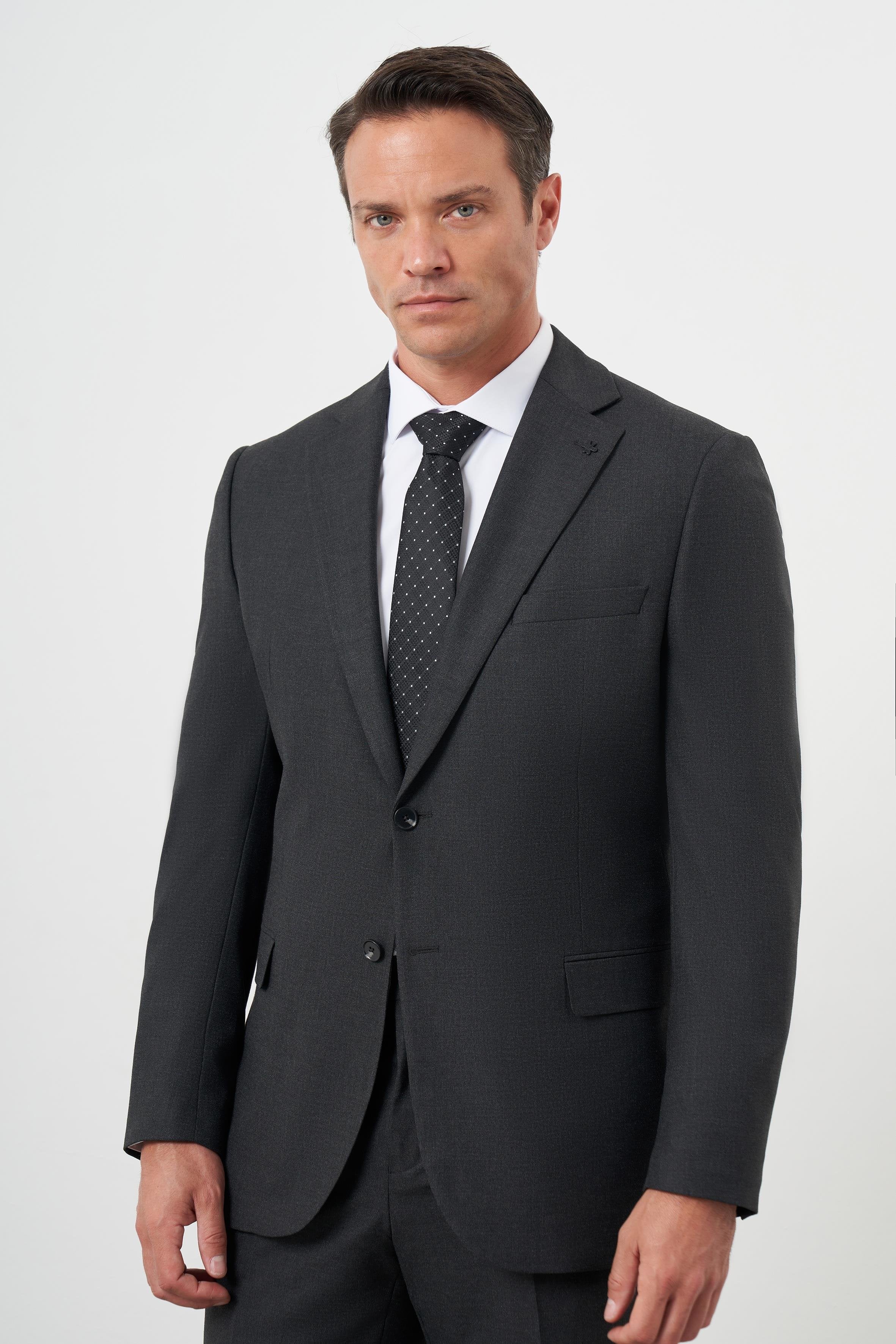 Morven Men's Smoke Grey Dynamic Fit Mono Collar Suit