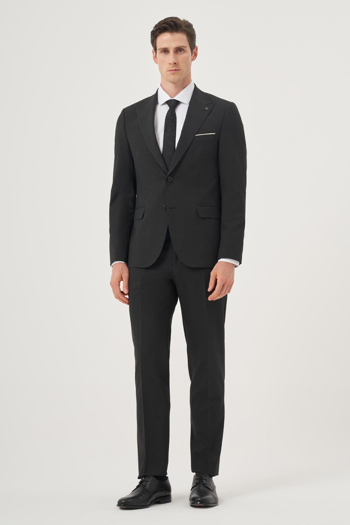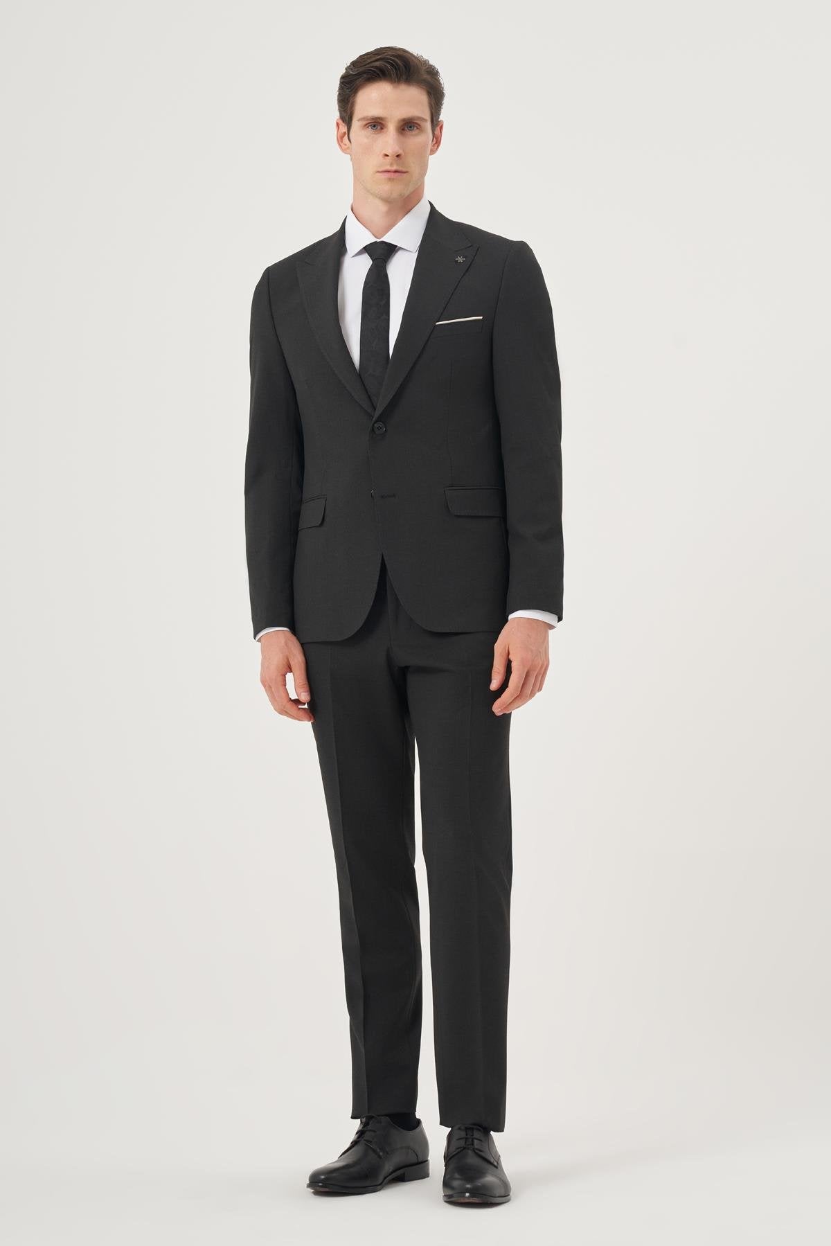 Morven Men's Smoke Polyviscon Basic Slim Fit Pointed Collar Suit