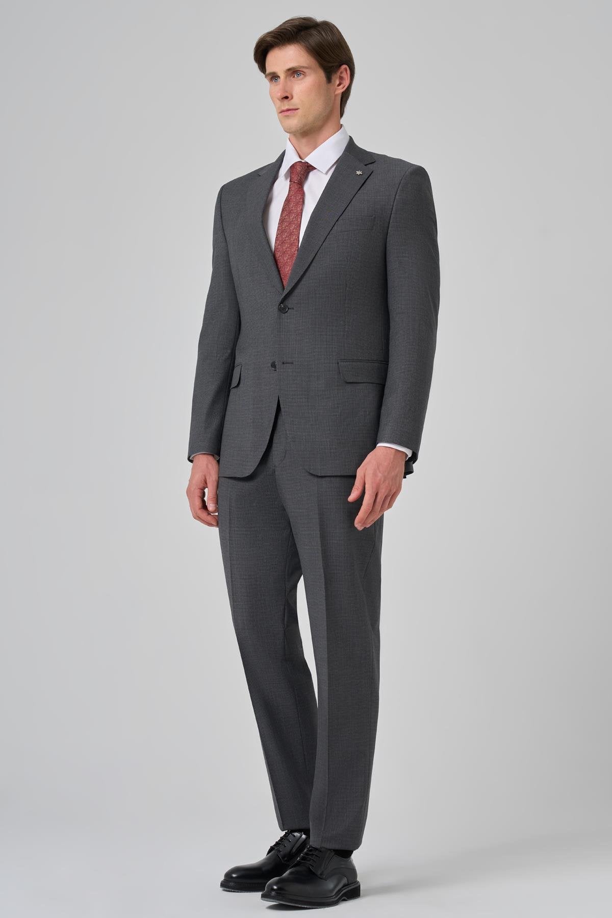 Morven Men's Smoke Wool Trend Patterned Dynamic Fit Suit