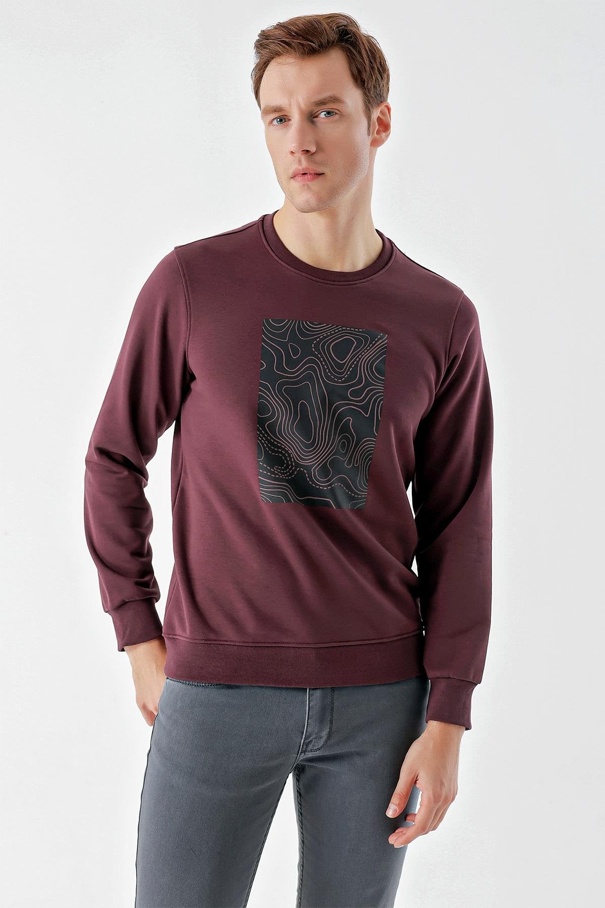 Morven Men's Plum Trend Crew Neck Sweat-Shirt