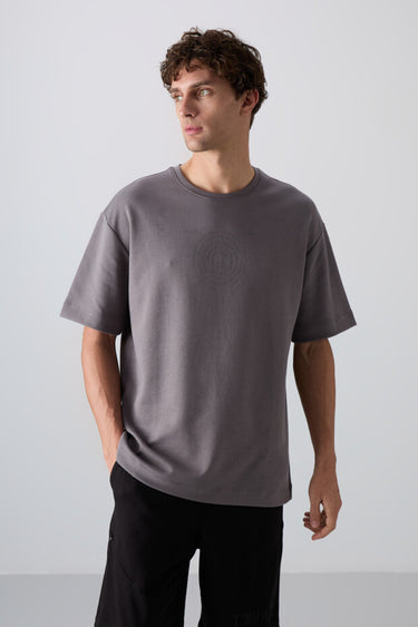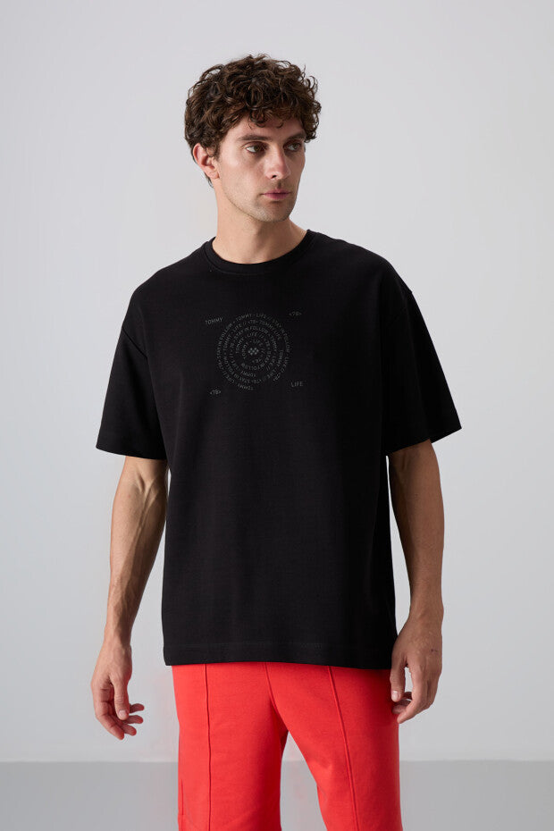 TOMMYLIFE Men's Oversize Fit Printed Textured Cotton T-Shirt