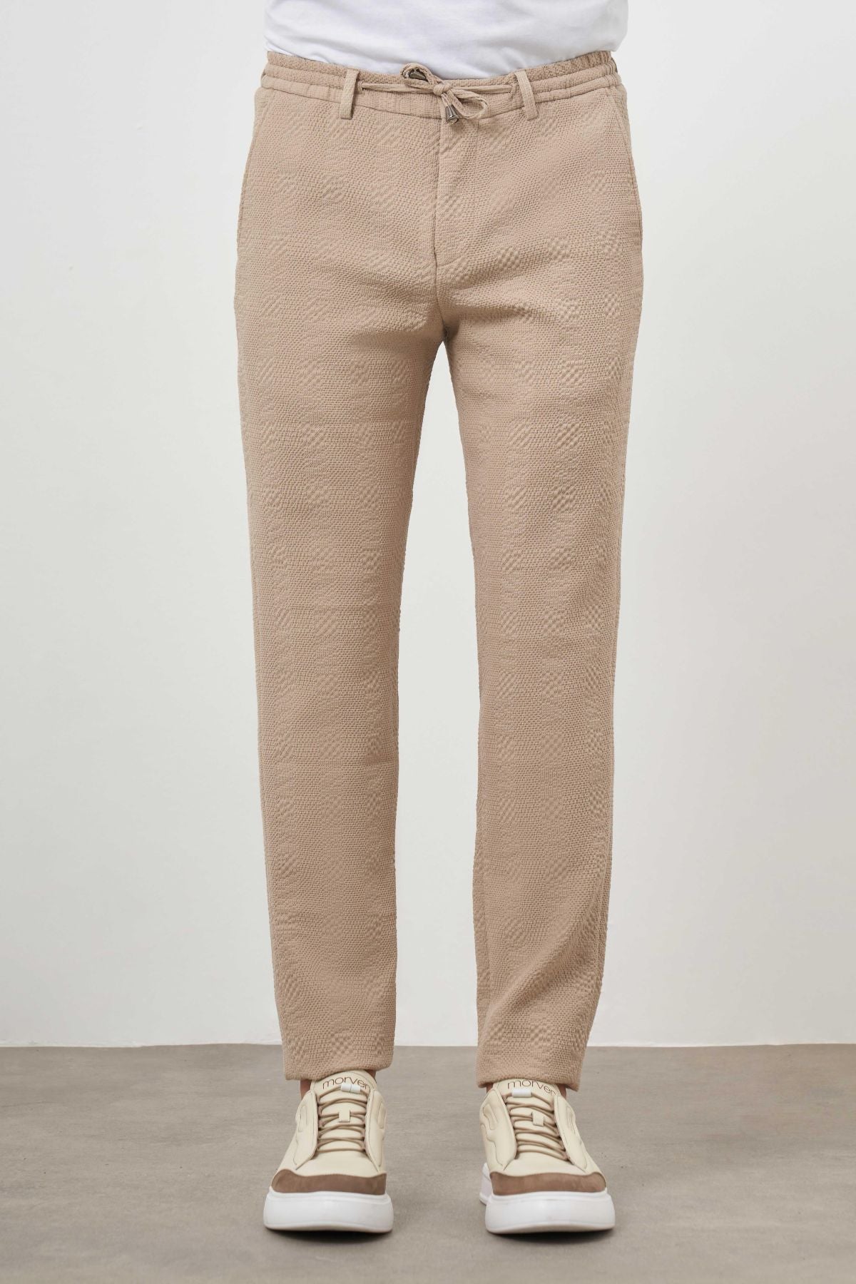 Morven Men's Beige Polyviscon Trendy Drawstring Jogger Slim Fit Sports Trousers