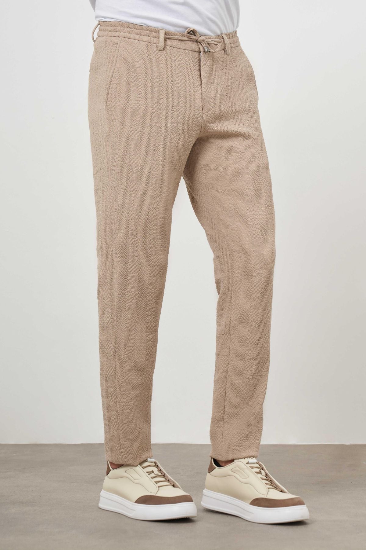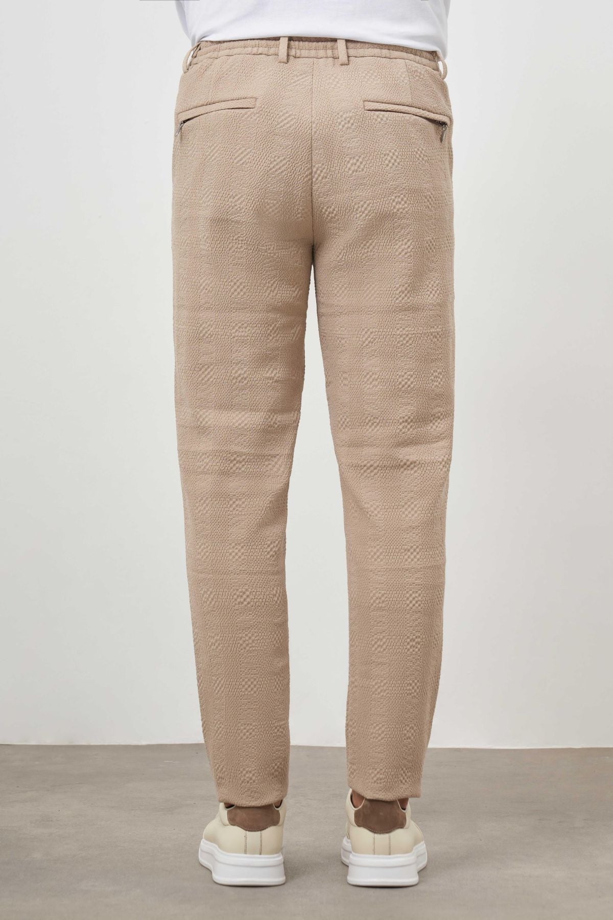 Upgrade your wardrobe with our Slim Fit Patterned Trousers, expertly crafted from a high-quality blend of 67% polyester, 31% viscose, and 2% Lycra. These trousers feature a stylish patterned design, convenient side pockets, and a secure button and lace closure, making them perfect for both casual and formal occasions.