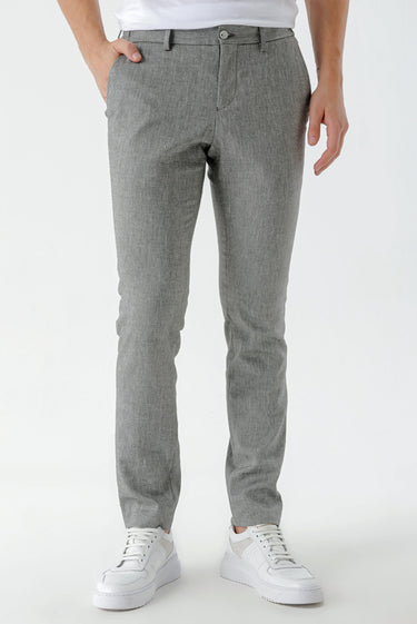 Enhance your wardrobe with our Slim Fit Patterned Trousers, crafted from a premium blend of 32% polyester, 23% linen, 23% cotton, 19% viscose, and 3% Lycra. These trousers feature a stylish patterned design, convenient side pockets, and a secure button and zipper closure, making them perfect for both casual and formal occasions.