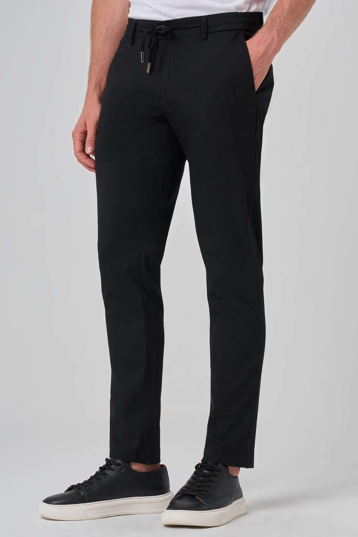 Morven Men's Black Polyviscon Jogger Slim Fit Trousers