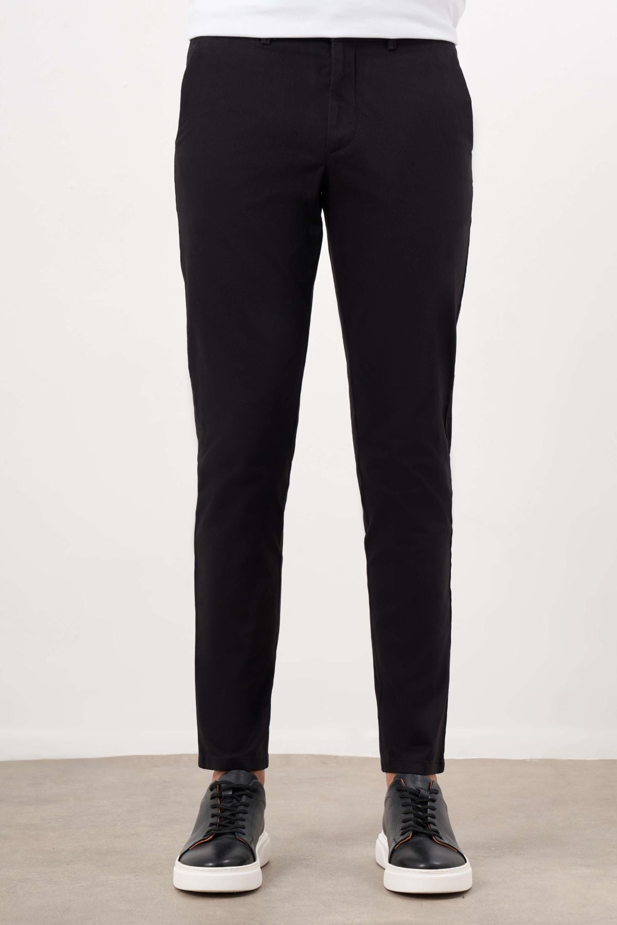 Morven Men's Black Seasonal Cotton Side Pocket Slim Fit Chino Trousers