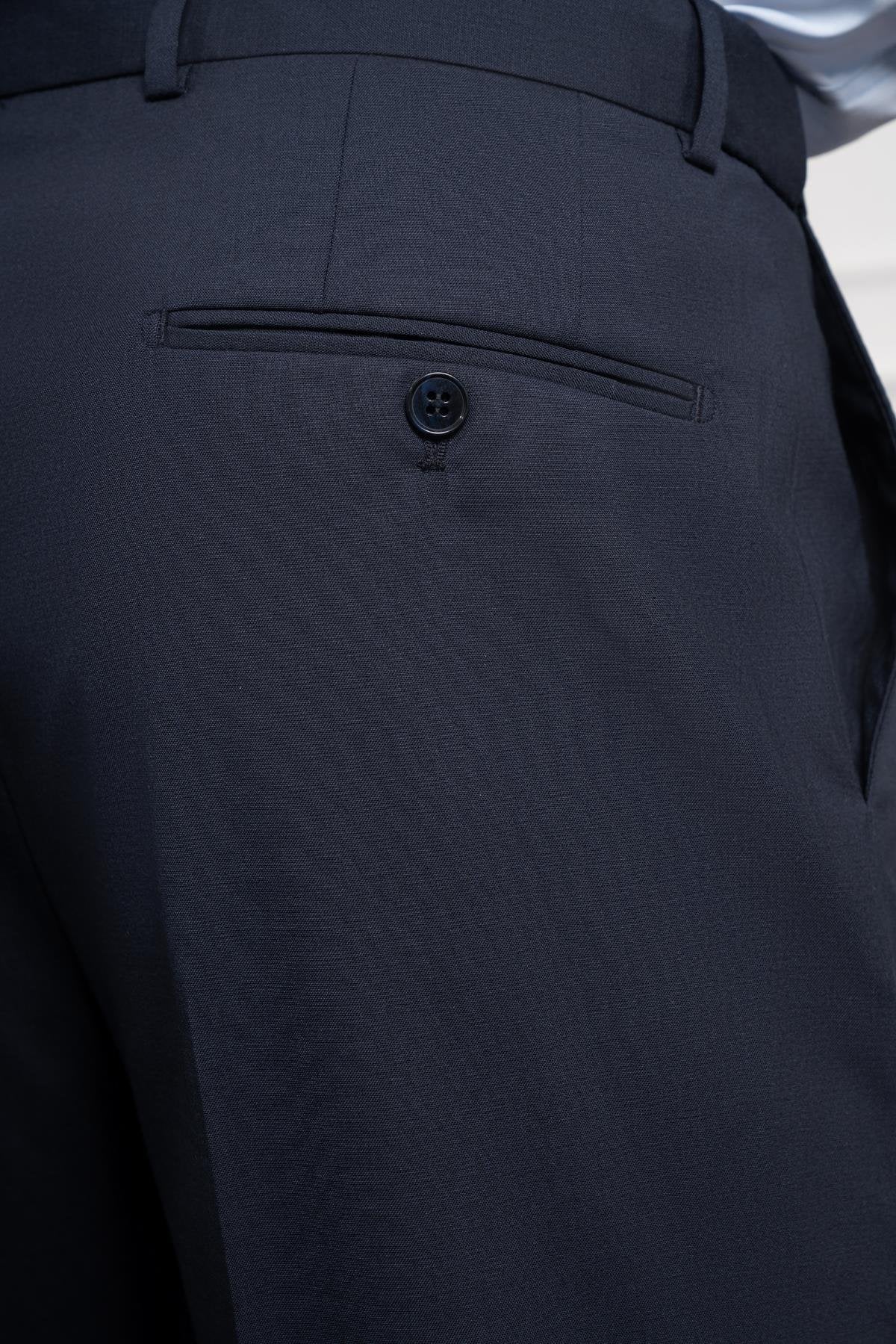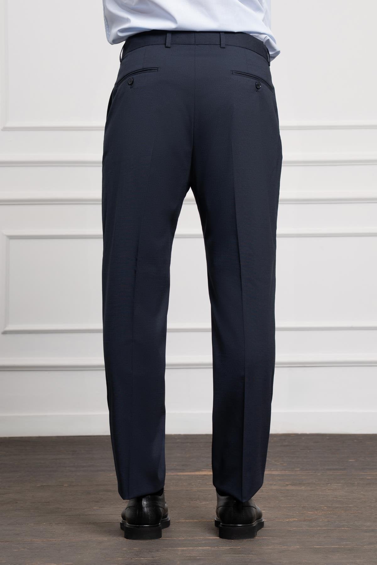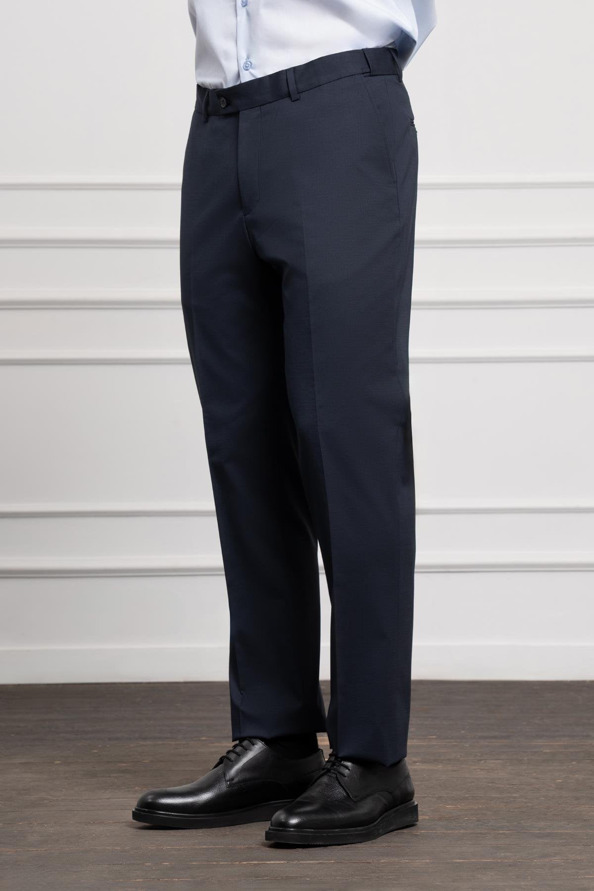 Morven Men's Navy Blue Wool Basic Dynamic Fit Relaxed Cut Classic Trousers