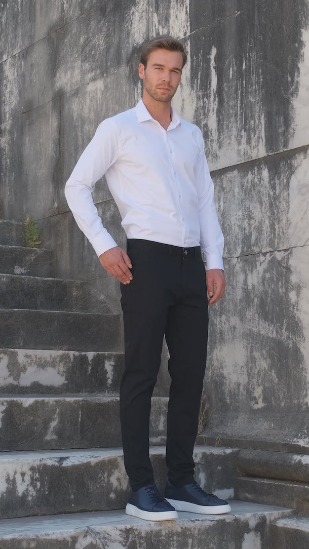 Discover our Slim Fit Straight Trousers, crafted from a premium blend of 97% cotton and 3% elastane for a comfortable stretch. These trousers feature a classic side pocket design and a button and zipper closure for a secure fit. Perfect for both casual outings and formal events, these trousers offer a sleek silhouette that complements any wardrobe.