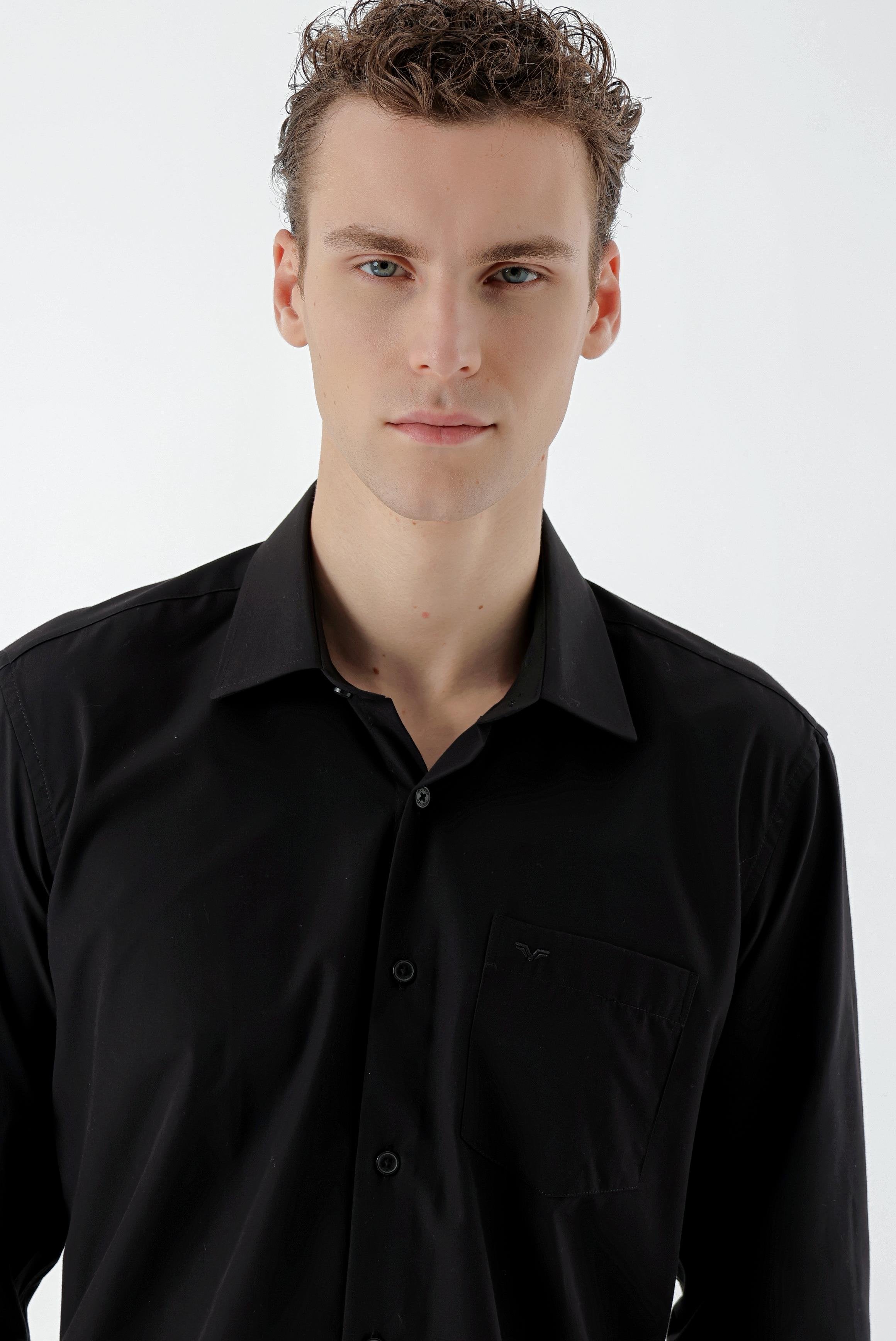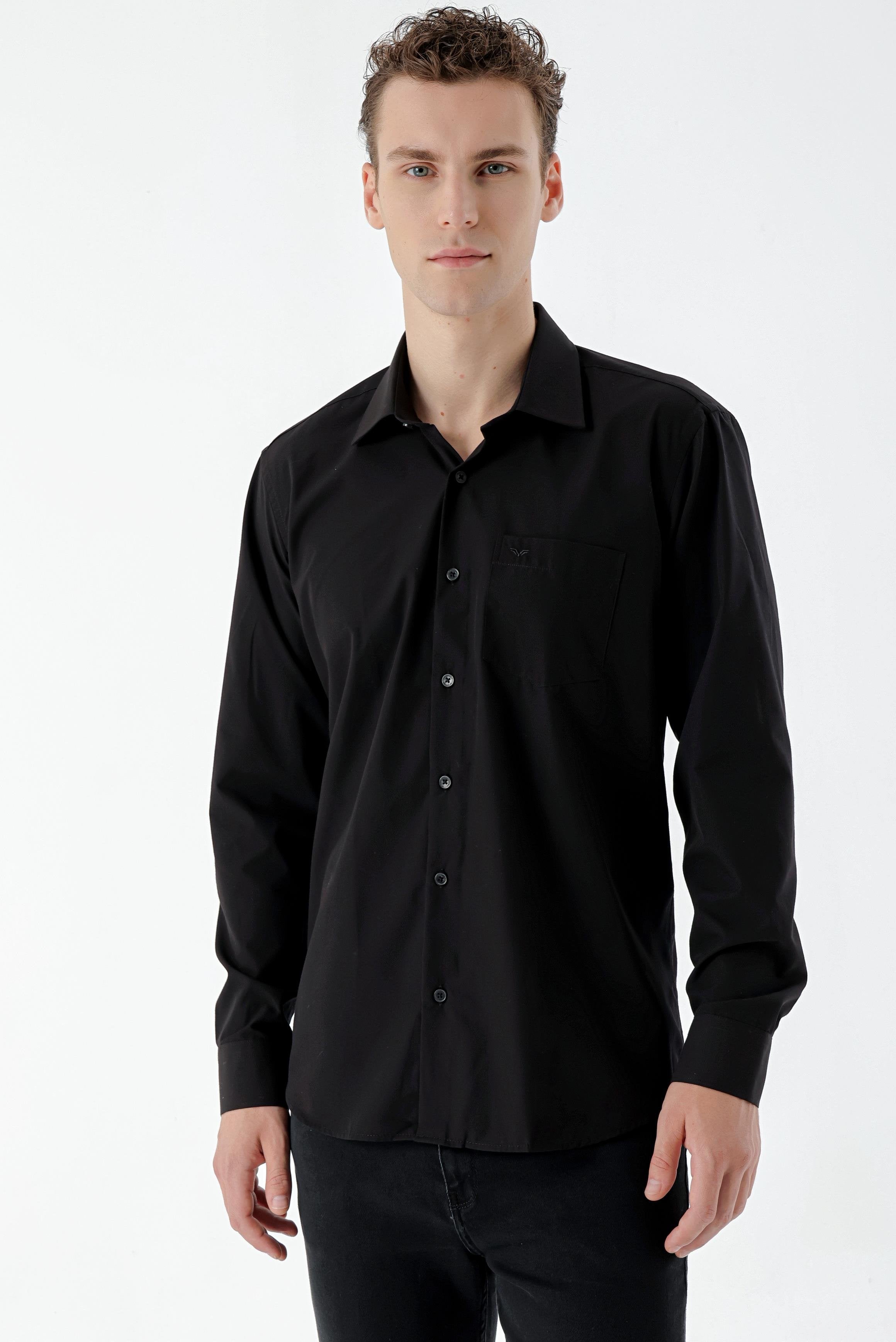Introducing our Regular Fit Straight Shirt, designed for a classic and polished look. This shirt features a stiff collar and is crafted from a durable blend of 65% polyester and 35% cotton, ensuring comfort and easy maintenance. The pocketless design and button closure provide a sleek silhouette, while the long sleeves and unlined construction make it suitable for various occasions. Additionally, this shirt is designed without a slit for a refined finish.