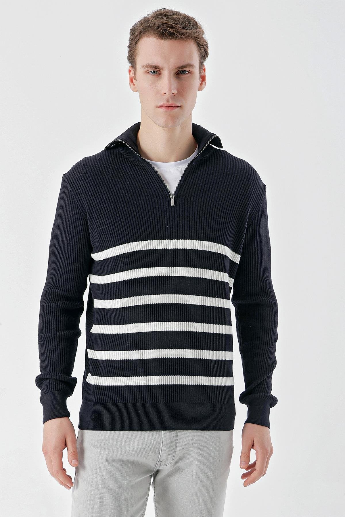 Morven Men's Trend Striped Zippered Stand Collar Dynamic Fit Relaxed Cut Knitwear