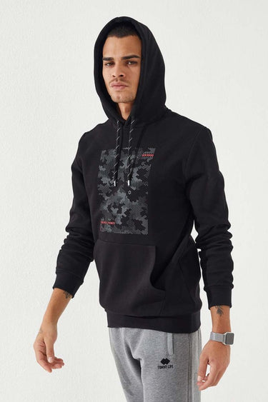 TOMMYLIFE Men's Standard Fit Hooded Sweatshirt with Camouflage Print