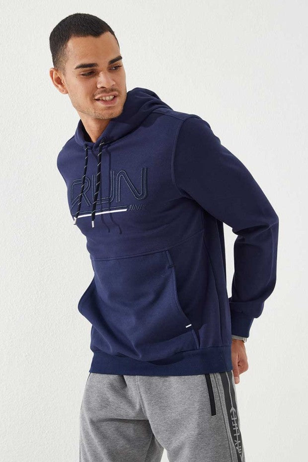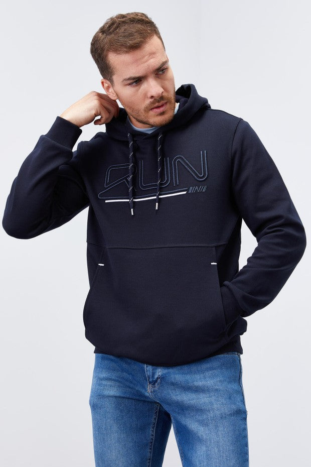 TOMMYLIFE Men's Standard Fit Hooded Sweatshirt with Embroidered Text Detail