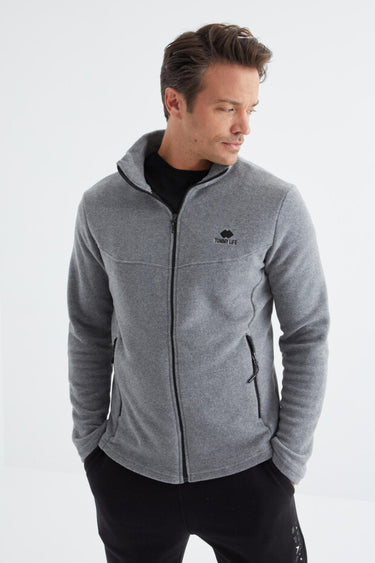 Zip-Up Stand-Up Collar Standard Fit Men’s Fleece Sweatshirt