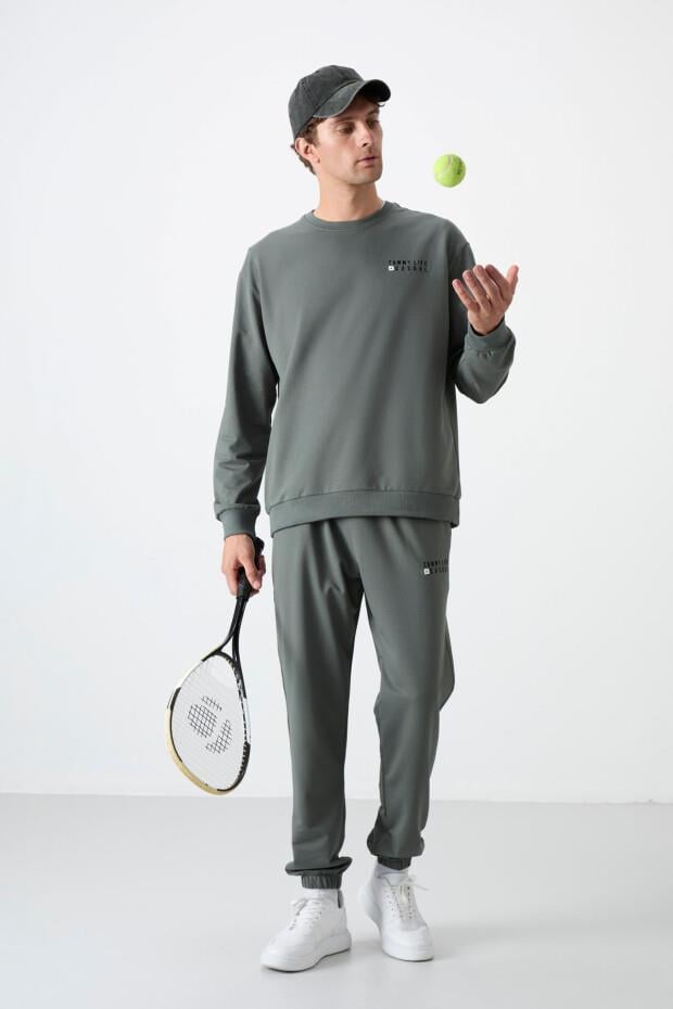 Young Almond Green Casual Round Neck Elastic Cuffed Cotton Men's Oversize Sweatpants Set - 85120